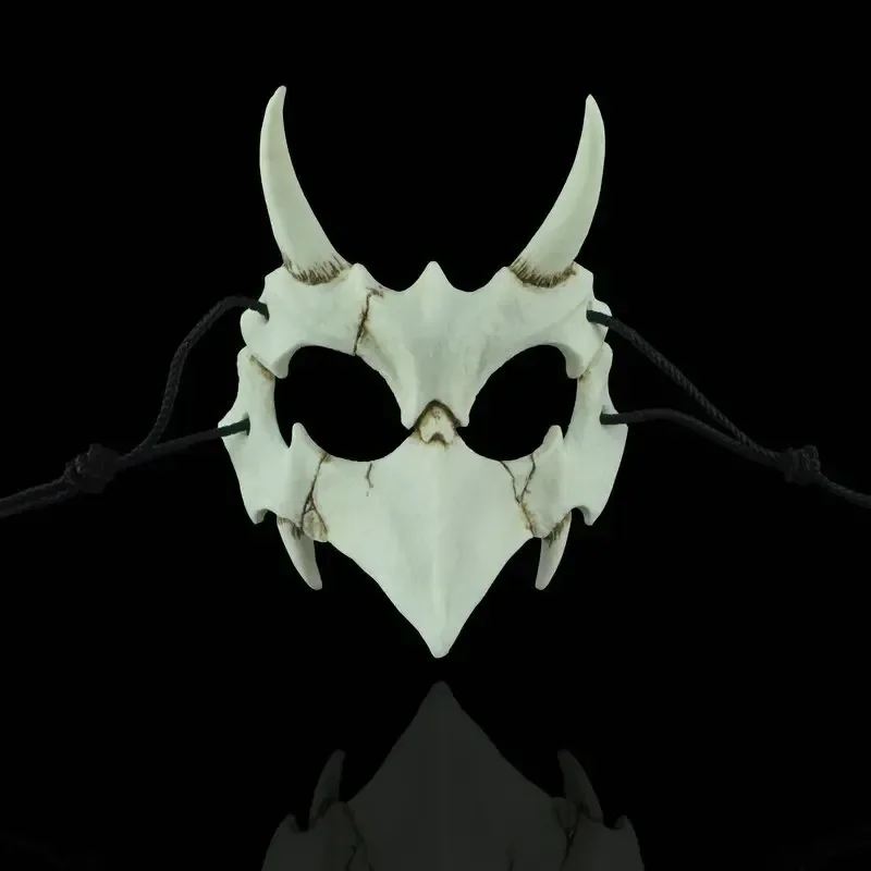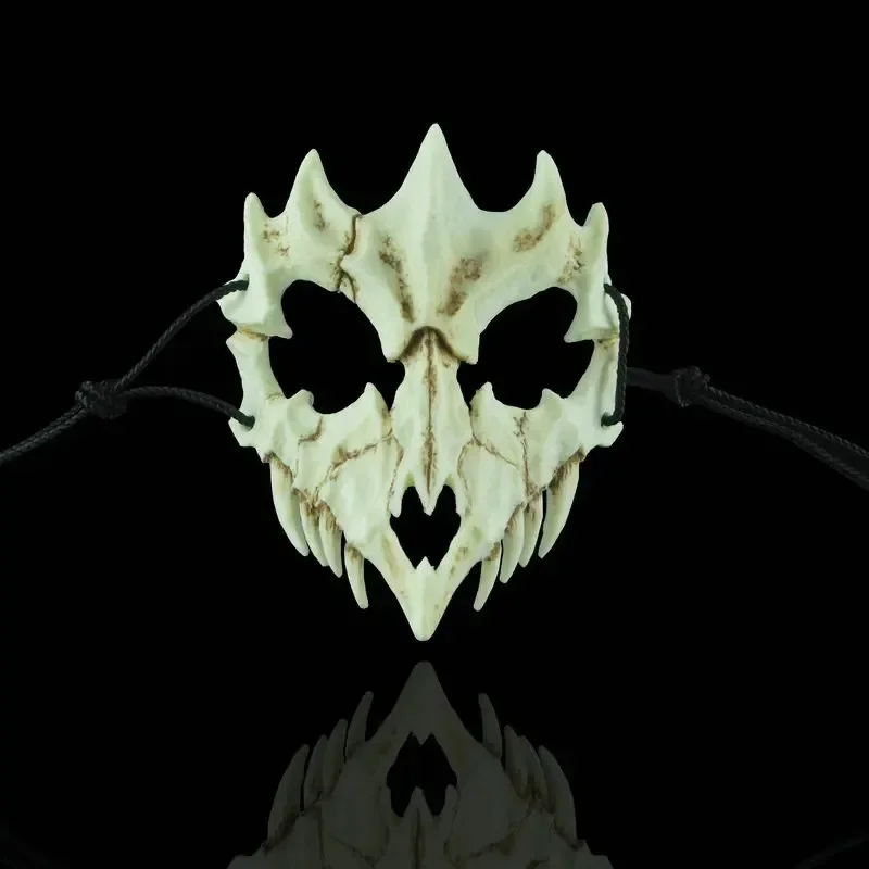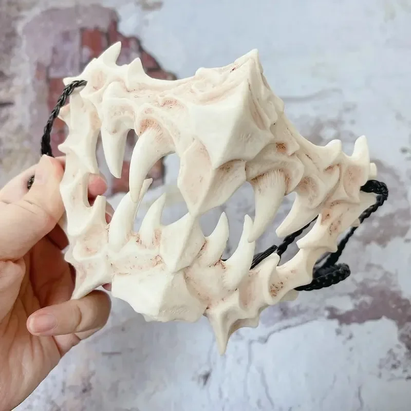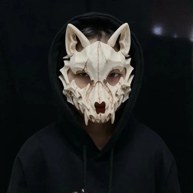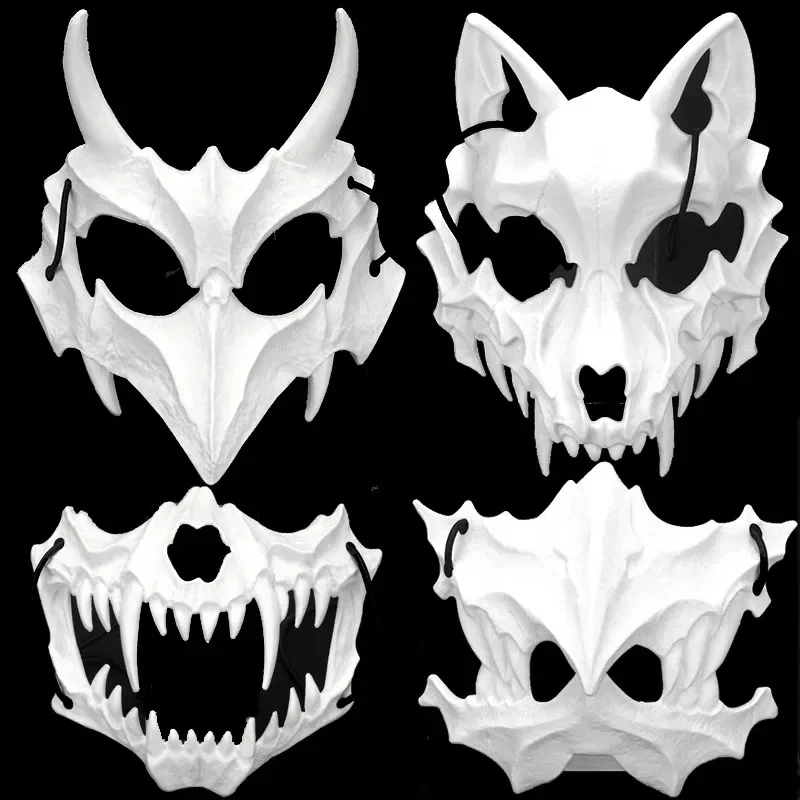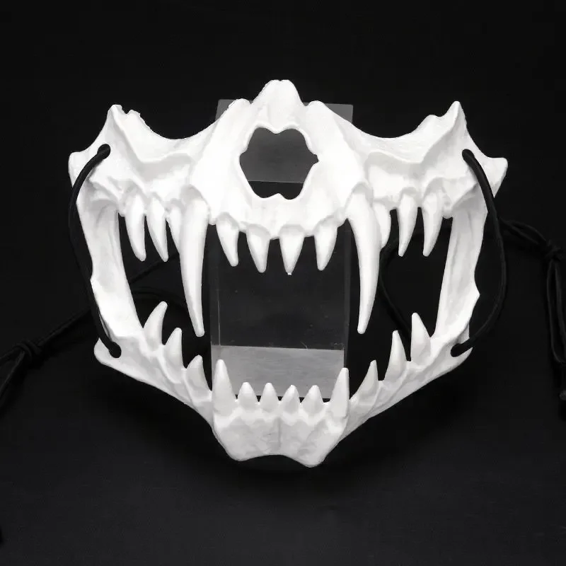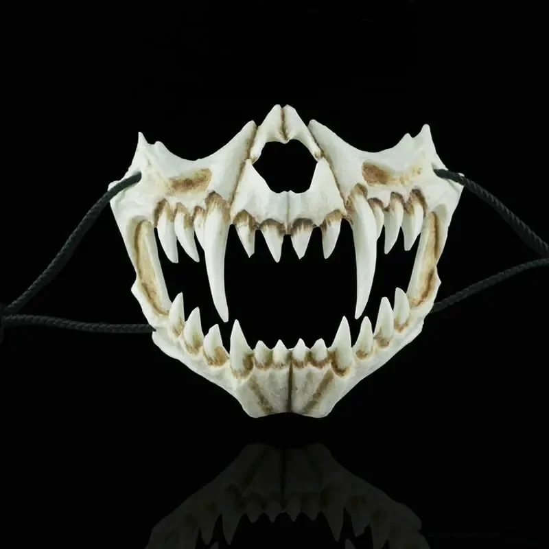 Festa crânio máscara dentes longos demônio esqueleto meia máscara facial lobo dragão tigre houjuu nue máscara cosplay traje de halloween adereços