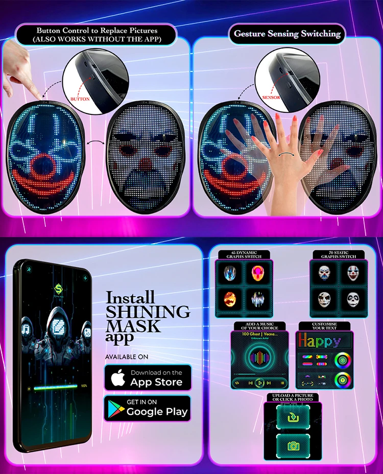- > Festa led light up máscara gesto detecção display inteligente led máscaras faciais programável bluetooth controle de aplicativo máscara transformadora