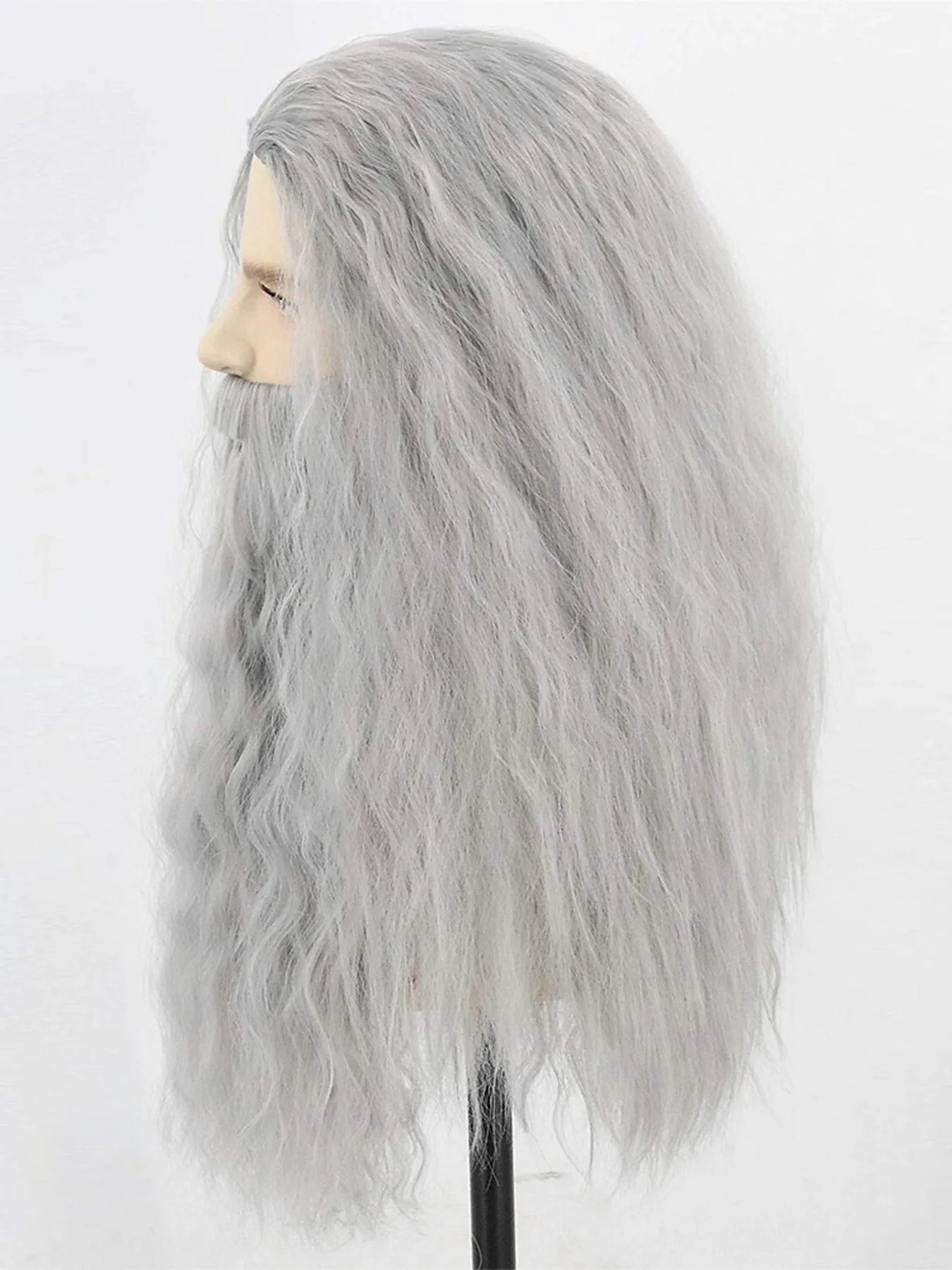 Festa temática vovô longo encaracolado cinza perucas masculinas com bigode halloween cosplay traje peruca de festa barba falsa