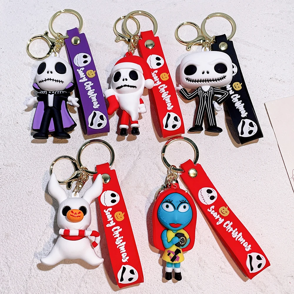 Figura clássica dos desenhos animados jack skellington chaveiro disney o pesadelo antes do natal boneca chaveiros mochila acessórios