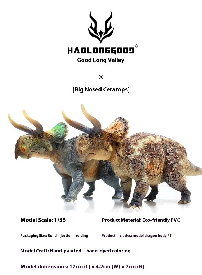 - > Figura de ação em estoque genuína haolonggood pteroceratops 1:35 dinossauro jurássico modelo moderno brinquedo colecionável presente para crianças