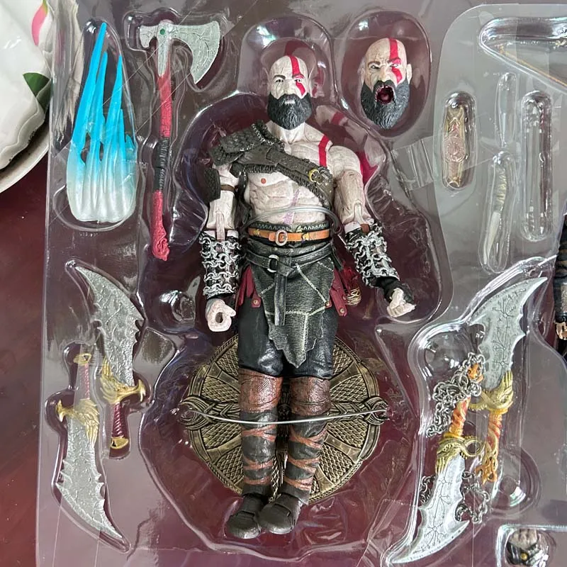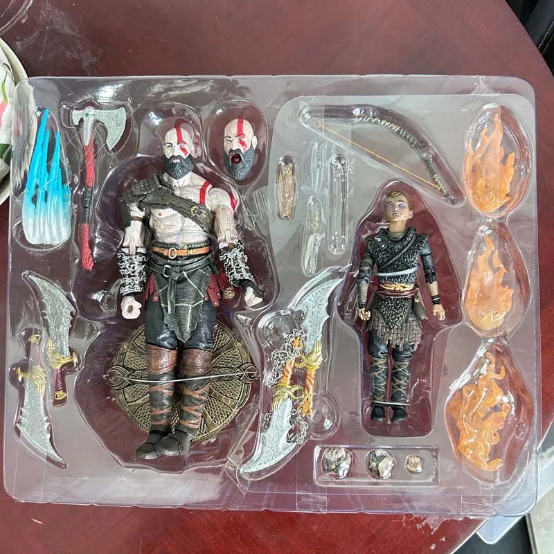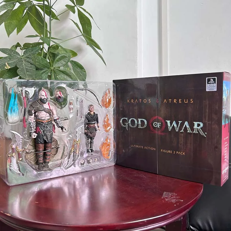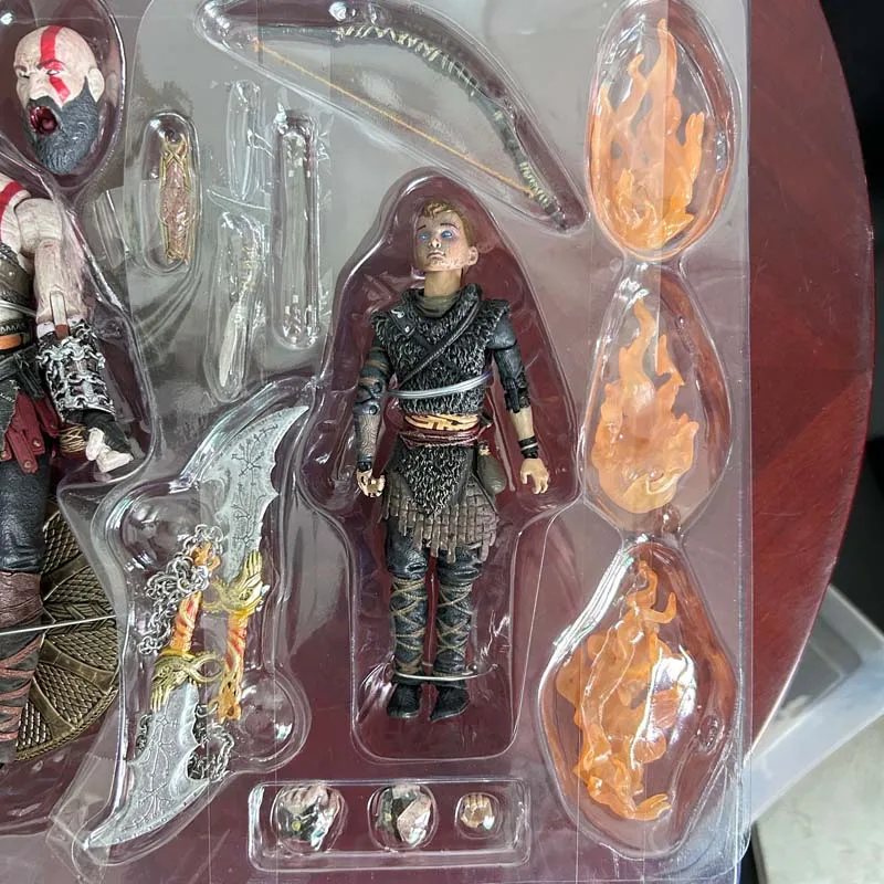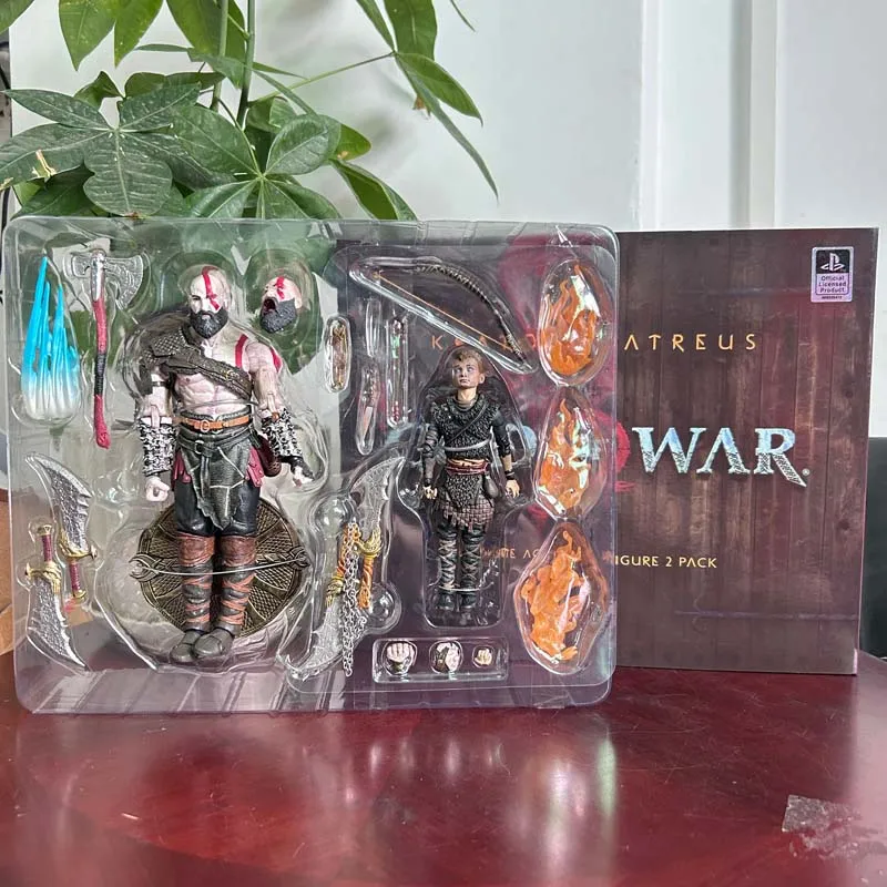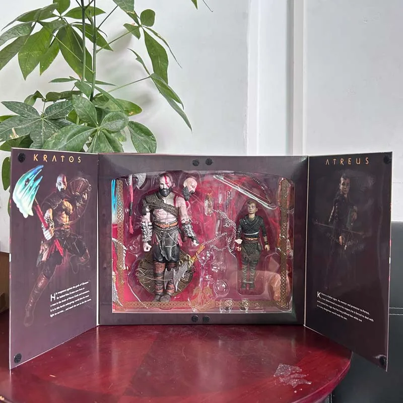 - > Figura de ação NECA God of War, Kratos Atreus Fantasma de Esparta com Escudo de Espada Machado, Modelo Arco e Flecha, Coleção Brinquedos