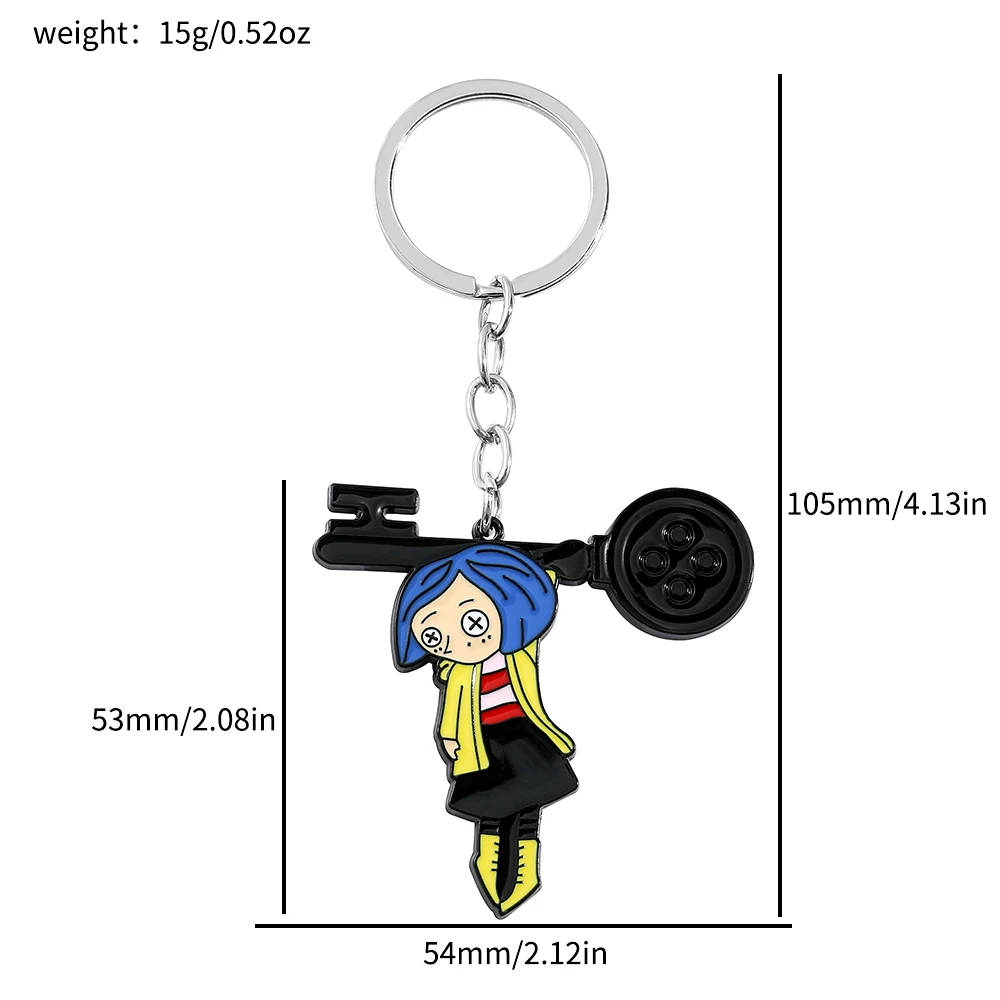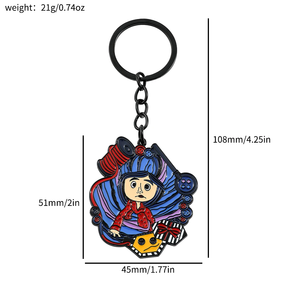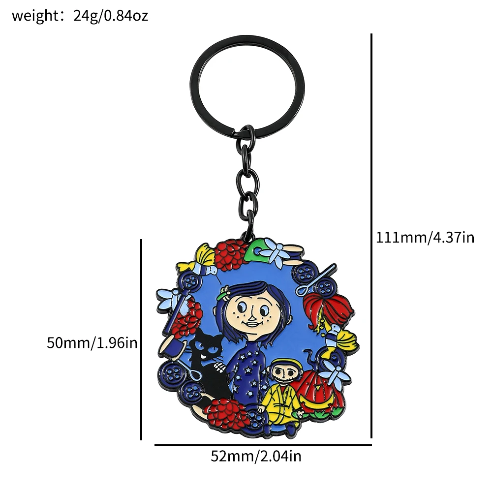 - > Figura de desenho animado Coraline e chaveiro de porta secreta, filme de anime emocionante de fantasia, pingente esmaltado, chaveiros, presentes de ornamento