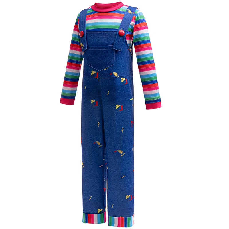Filme de terror chucky halloween menina vestido meninos topo e macacões irmão-irmã traje chucky criança festa criança presente