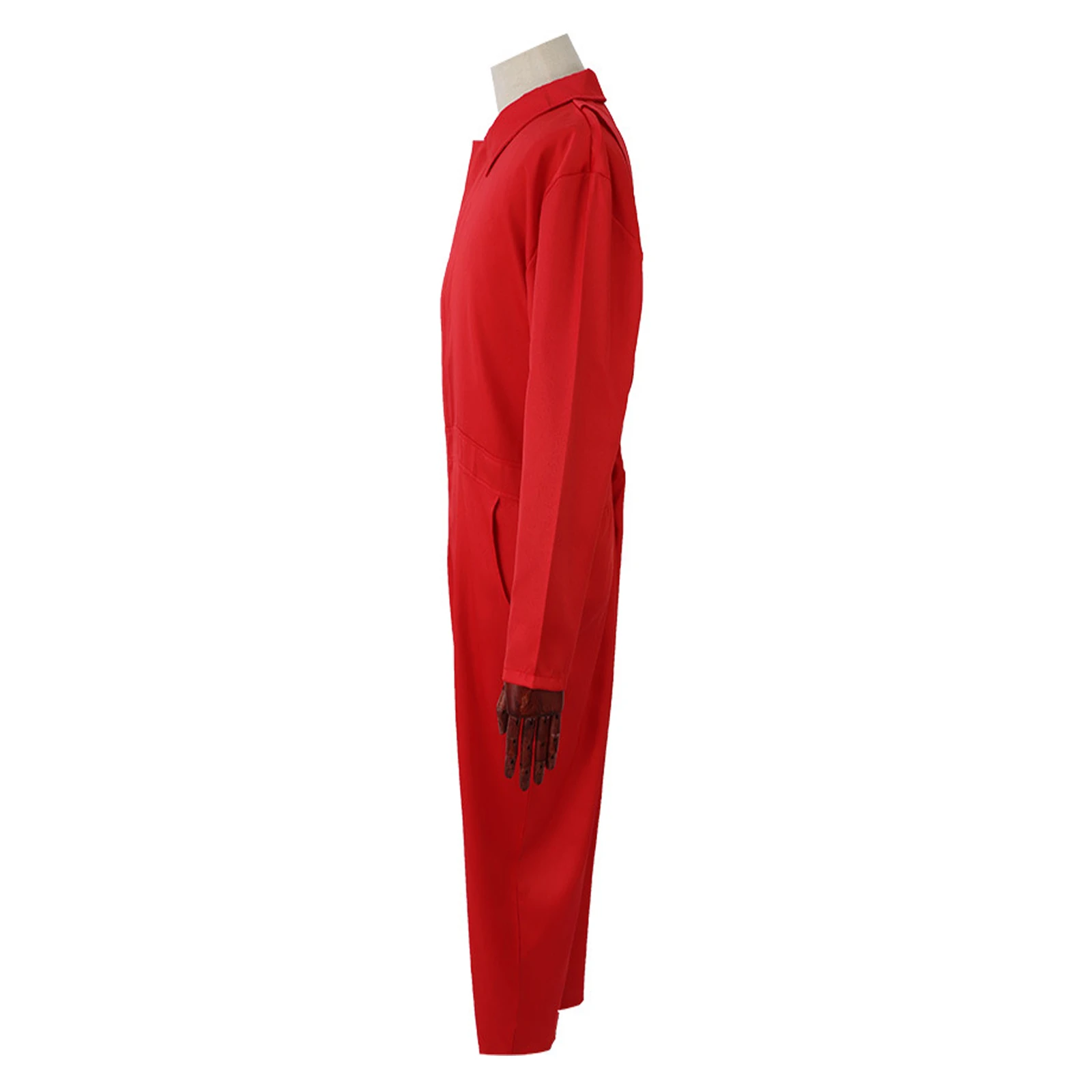 Filme eua traje vermelho macacão adulto bodysuit turn-down colarinho manga longa com máscara luvas roupa de halloween