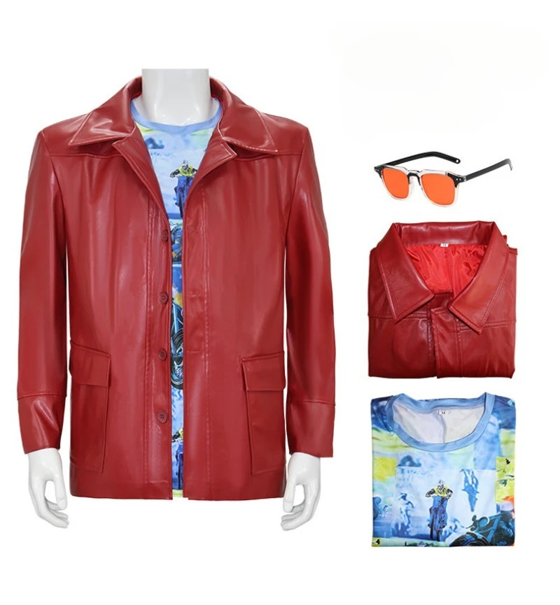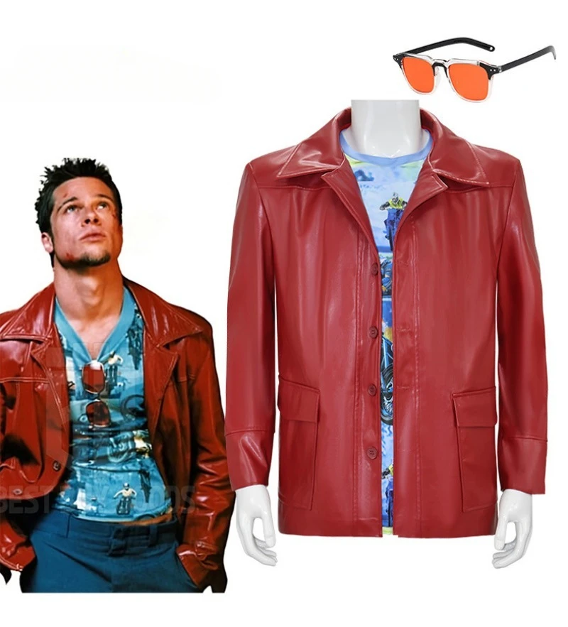 Filme luta clube cosplay traje tyler cos jaqueta de couro do plutônio casaco camisa óculos conjunto completo para homens halloween carnaval festa outfit