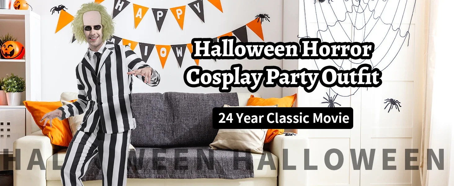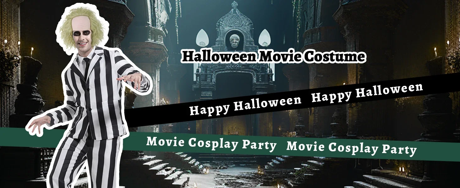 Filme suco cosplay traje preto e branco listra jaqueta camisa calça conjunto masculino adulto roupa de halloween