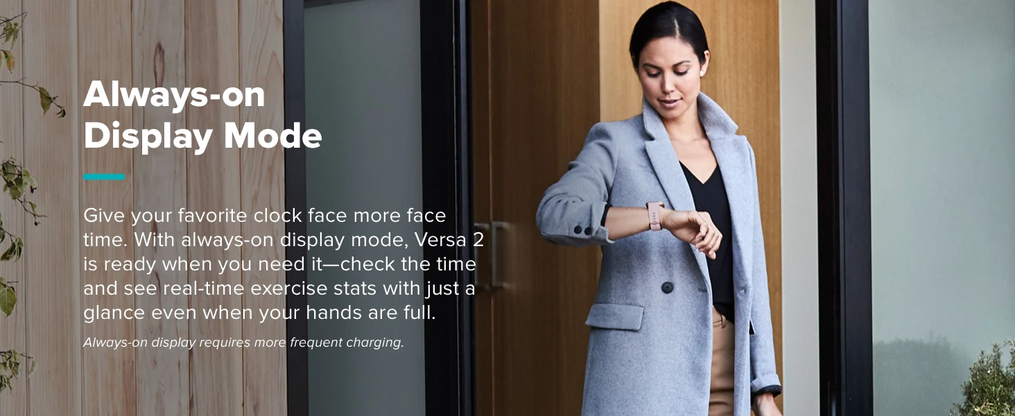 Meet Fitbit Versa 2™—a smartwatch that elevates every moment. Use your voice to create alarms, set bedtime reminders, check the weather or start an exercise with Amazon Alexa Built-in, plus see the time or your stats at a glance with always-on display mode (may require more frequent charging). Take your look from the gym to the office with its modern and versatile design. Play your favorite music and podcasts with Spotify (subscription required, not available in all countries). Plus get Fitbit Pay™, a daily Sleep Score, notifications and 24/7 heart rate for an experience that revolves around you. Fitbit is part of the Google family. Requires use of Fitbit app with compatible iPhone or Android devices. A Google account will be required.