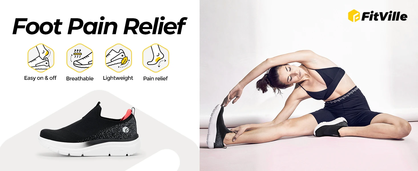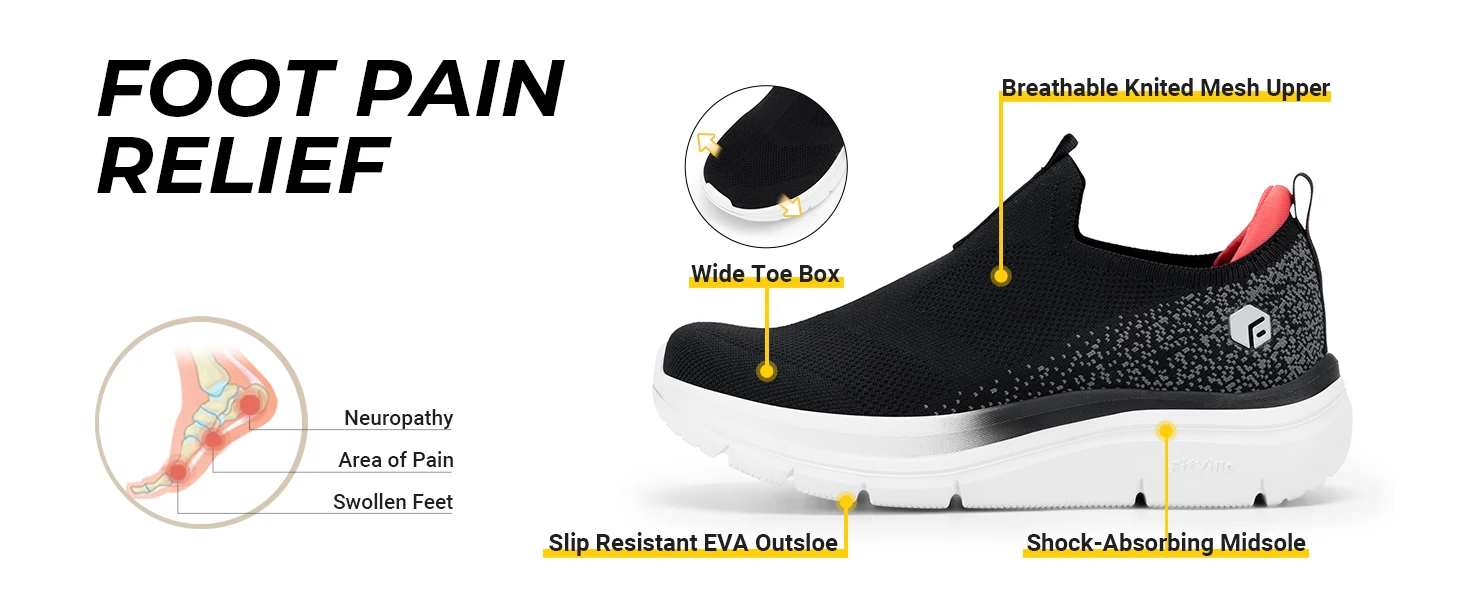 - > Fitsale-sapatos slip-on respiráveis para mulheres, sola grossa, leve, respirável, pés chatos, salto em arco