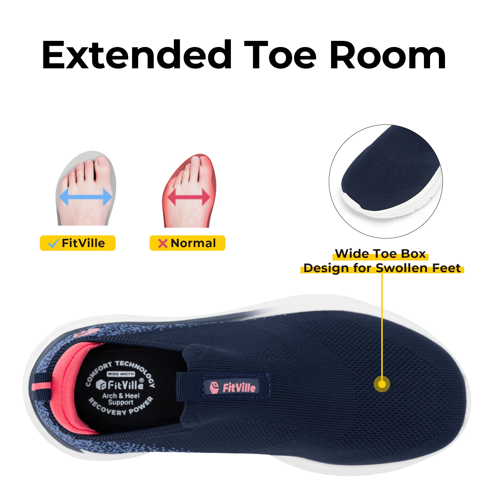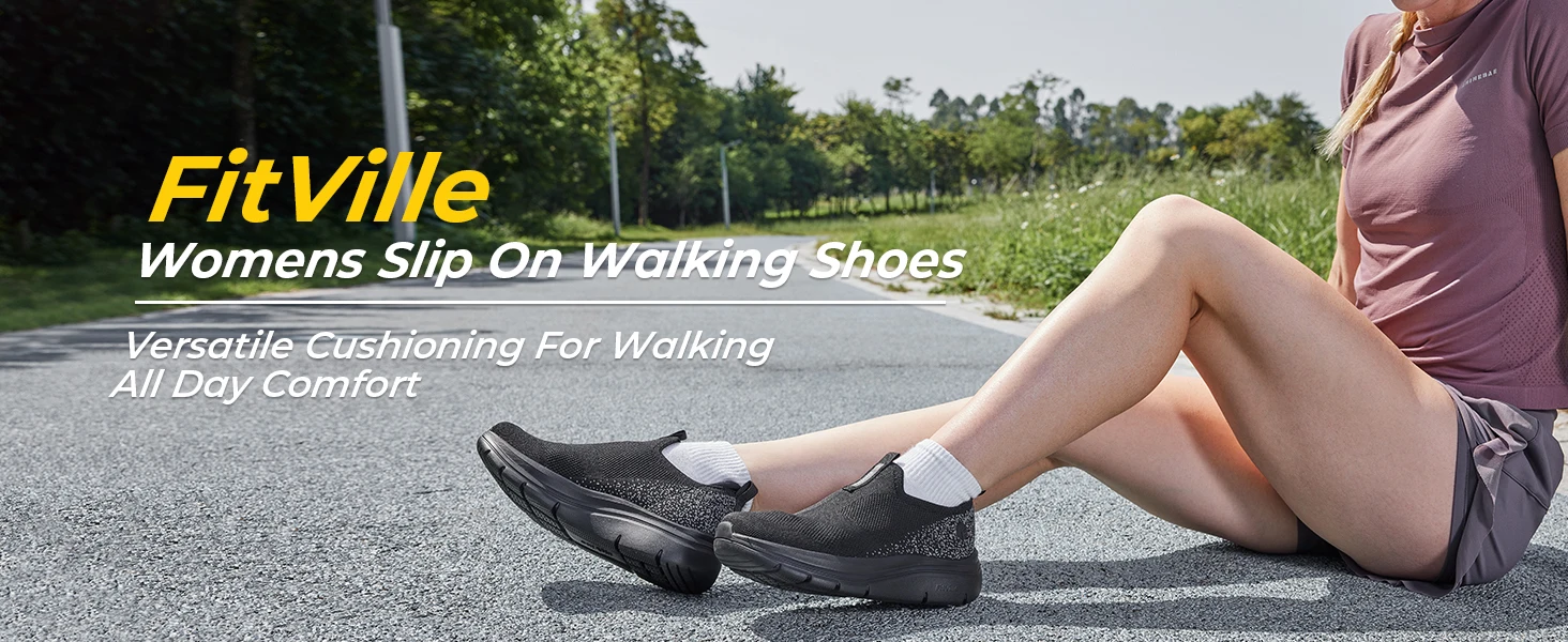 Fitsale-sapatos slip-on respiráveis para mulheres, sola grossa, leve, respirável, pés chatos, salto em arco