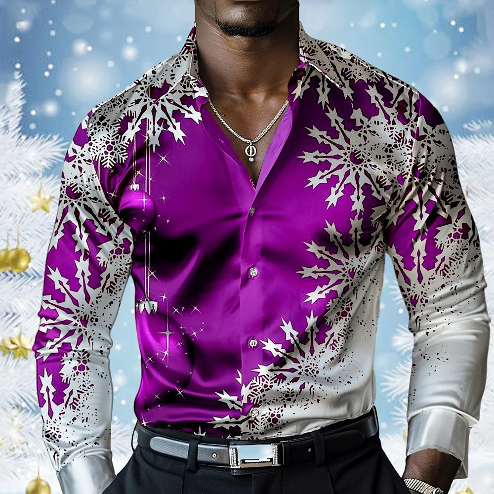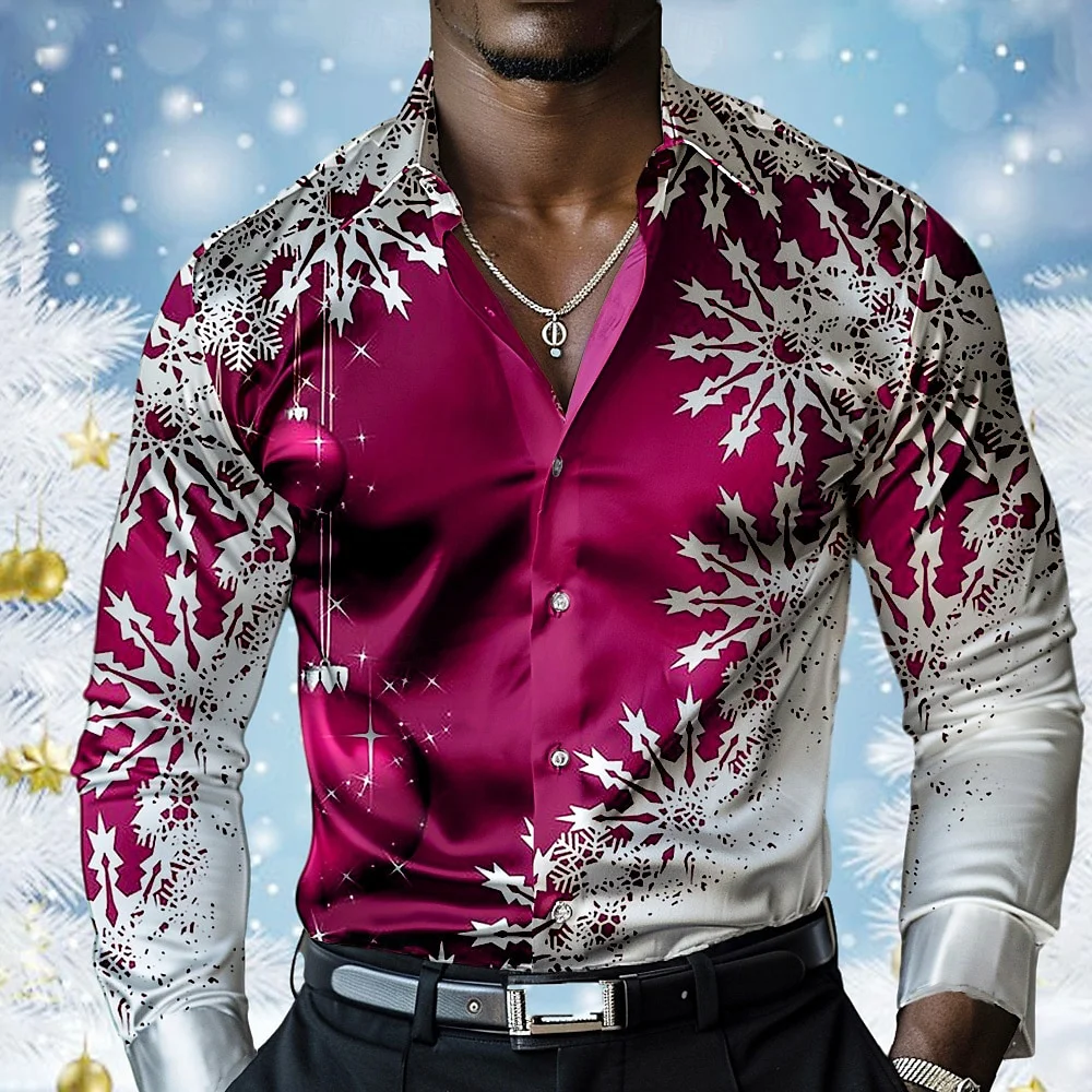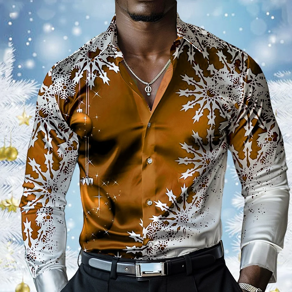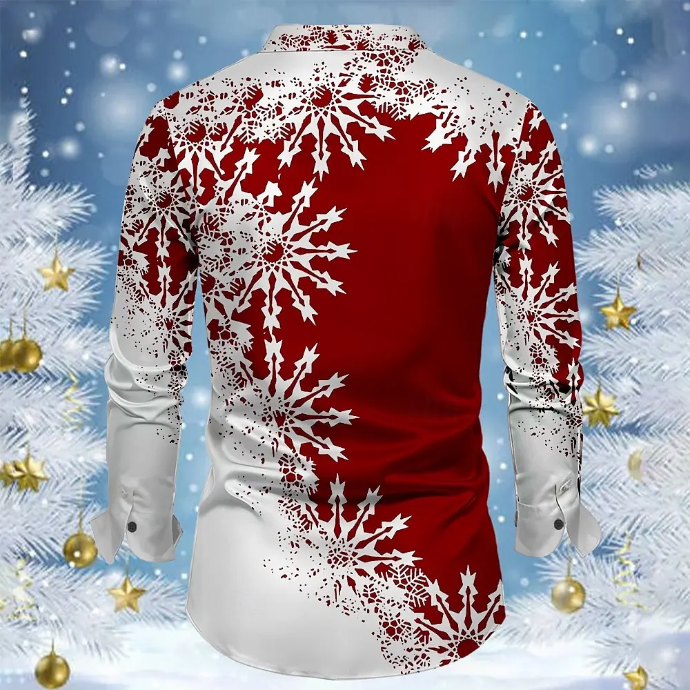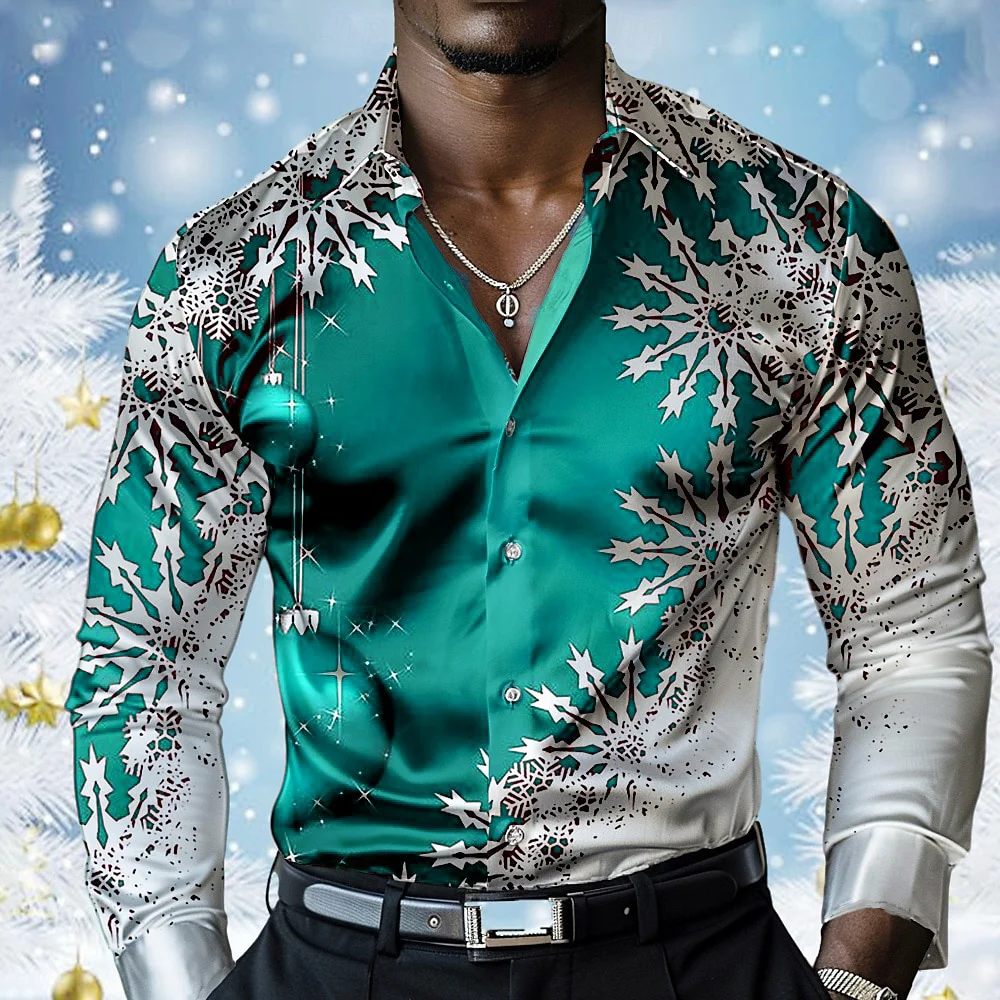 Floco de Neve dos homens Natal Camisa Formal dos homens Camisa Manga Longa Festa Vestido de Noite Vestido Diário Férias Colarinho Camisa