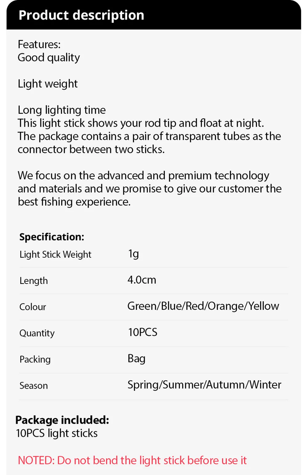 • Luz Noturna :A luz noturna deste produto aumenta a visibilidade durante a pesca, tornando-o uma ferramenta indispensável para qualquer pescador.
