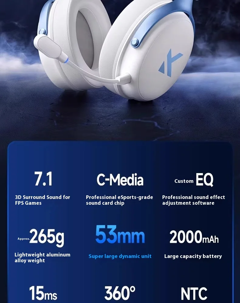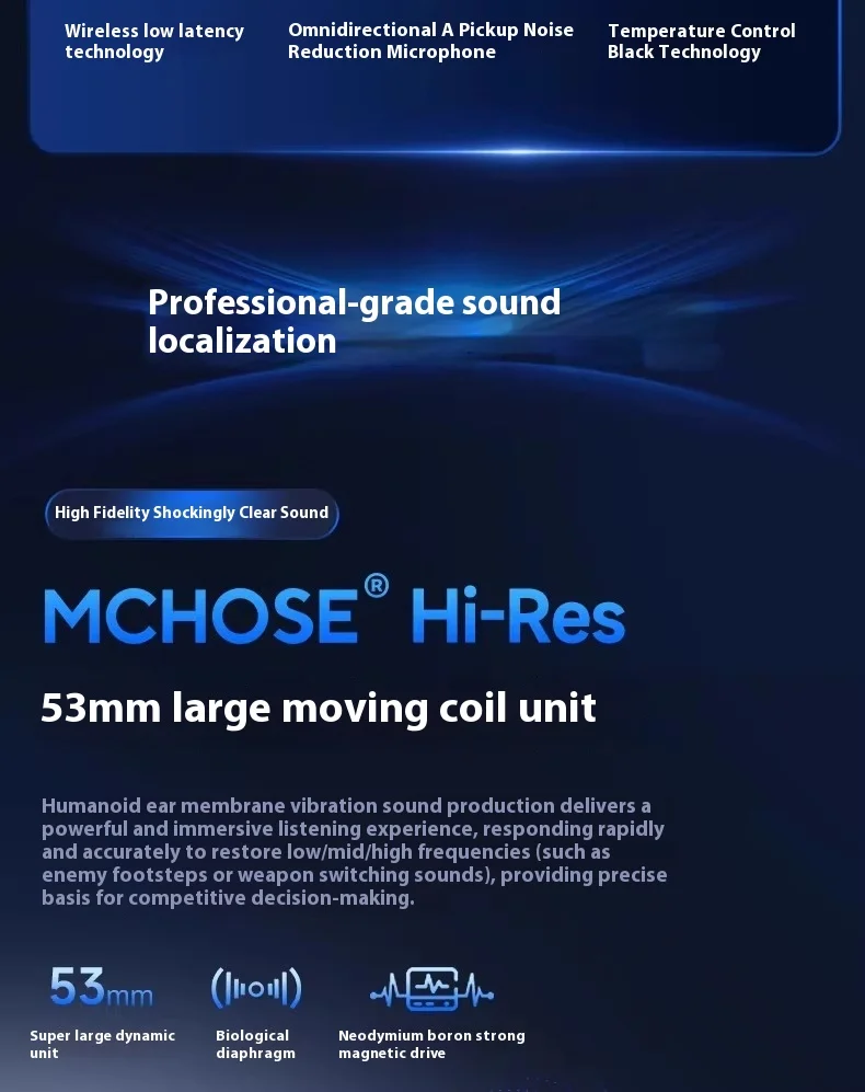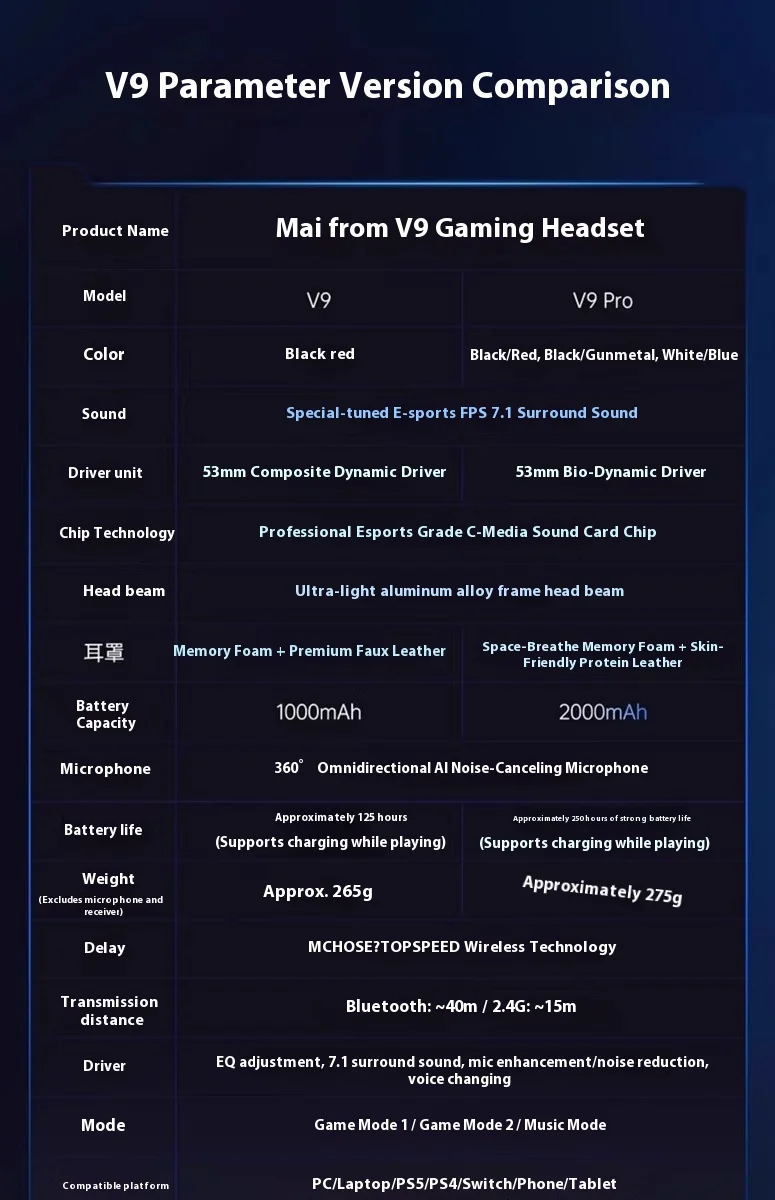 Fone de ouvido para jogos MCHOSE V9 Pro, fones de ouvido Bluetooth sem fio quad-mode over-ear para PC com microfone (estilo Delta)