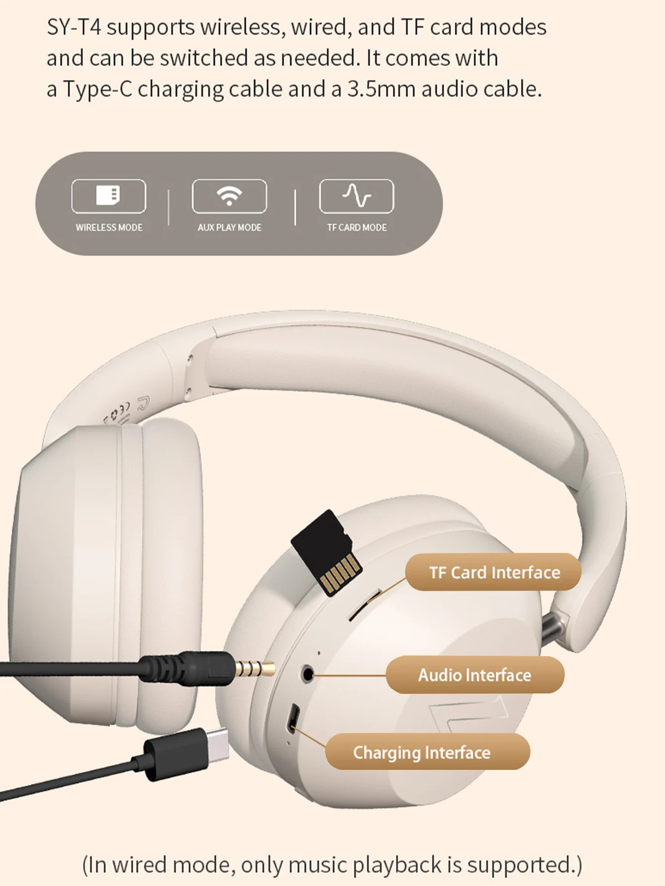 Fones de ouvido Bluetooth sobre a orelha, chamadas sem fio de alta qualidade, esportes de longa duração, jogos e ouvir música Fones de ouvido Bluetooth