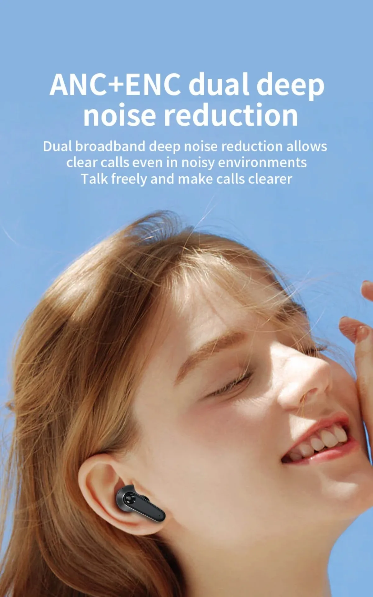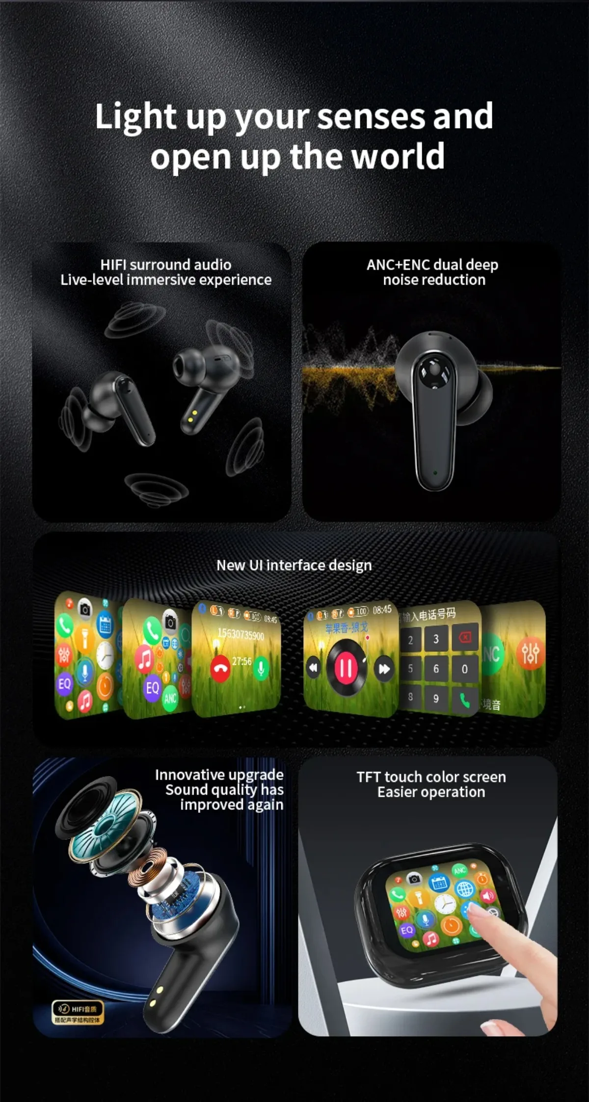 • Fones de ouvido com cancelamento de ruído ANC+ENC com tela inteligente colorida x 1 par