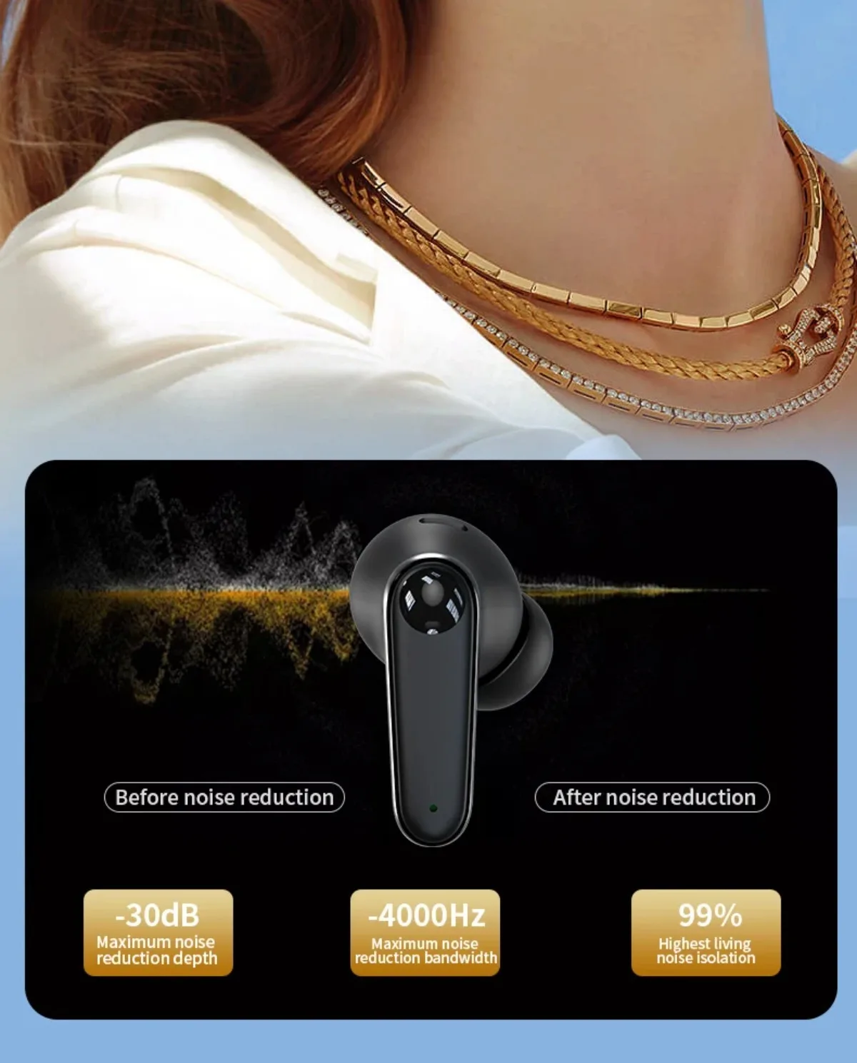 • Cancelamento de ruído ANC+ENC: Cancelamento de ruído profundo de banda dupla com máximo e até 99% de isolamento de ruído ambiente, garantindo chamadas nítidas em ambientes barulhentos.
