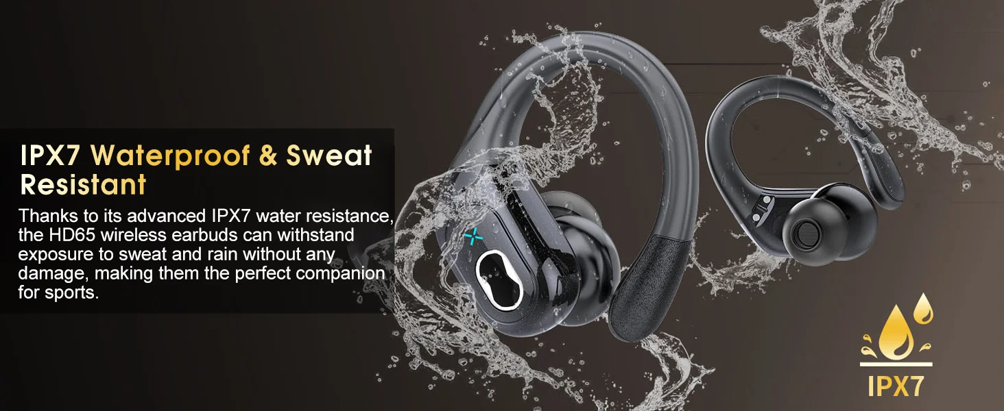 Design esportivo ergonômico e à prova d'água IPX7: Os fones de ouvido esportivos sem fio apresentam ganchos para os ouvidos feitos de um material TPU inovador (elástico) que não apenas resolve o problema de queda dos fones de ouvido Bluetooth durante a corrida, mas também é confortável de usar e antialérgico. Os fones de ouvido sem fio bluetooth são equipados com material à prova d'água nano-revestido, que pode prevenir eficazmente danos por respingos causados por suor e gotas de chuva, especialmente para corrida, academia, ioga e mais esportes.
