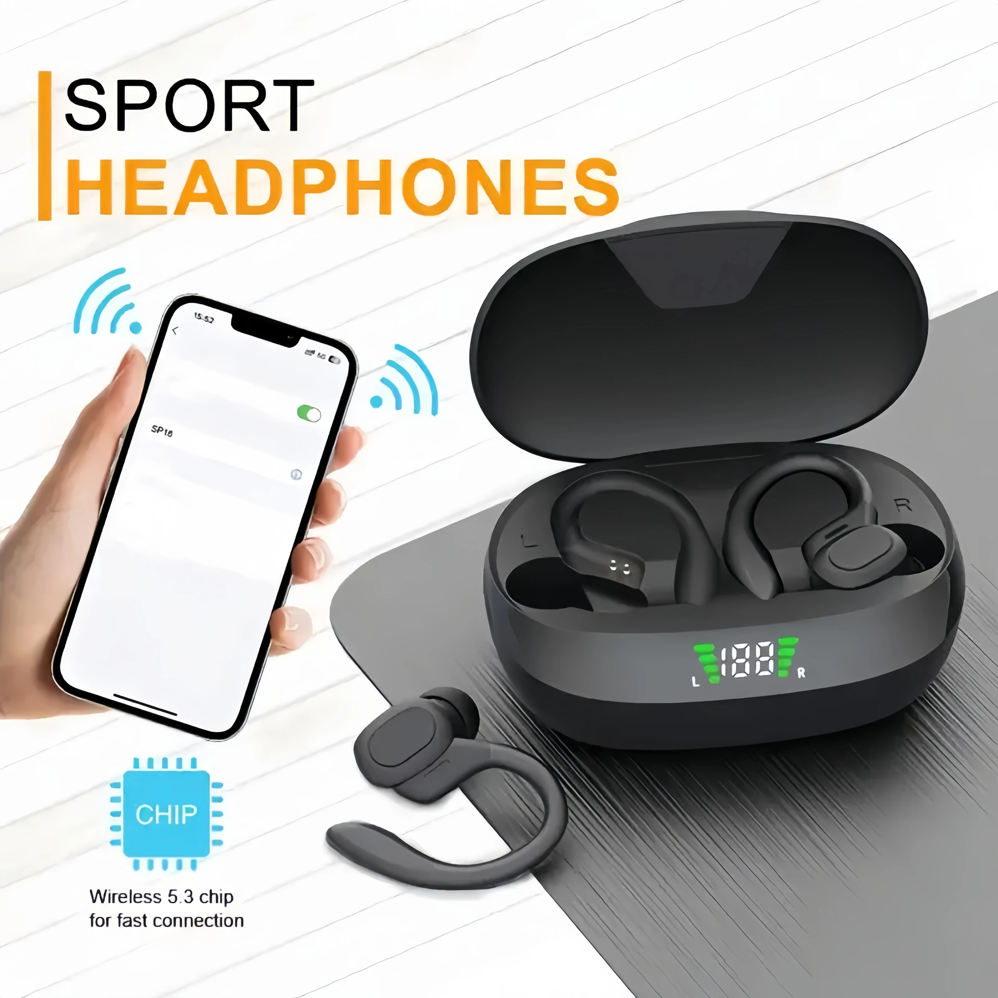Fones de ouvido sem fio verdadeiros, fones de ouvido Tws com microfone, fones de ouvido esportivos, fones de ouvido intra-auriculares estéreo com display LED