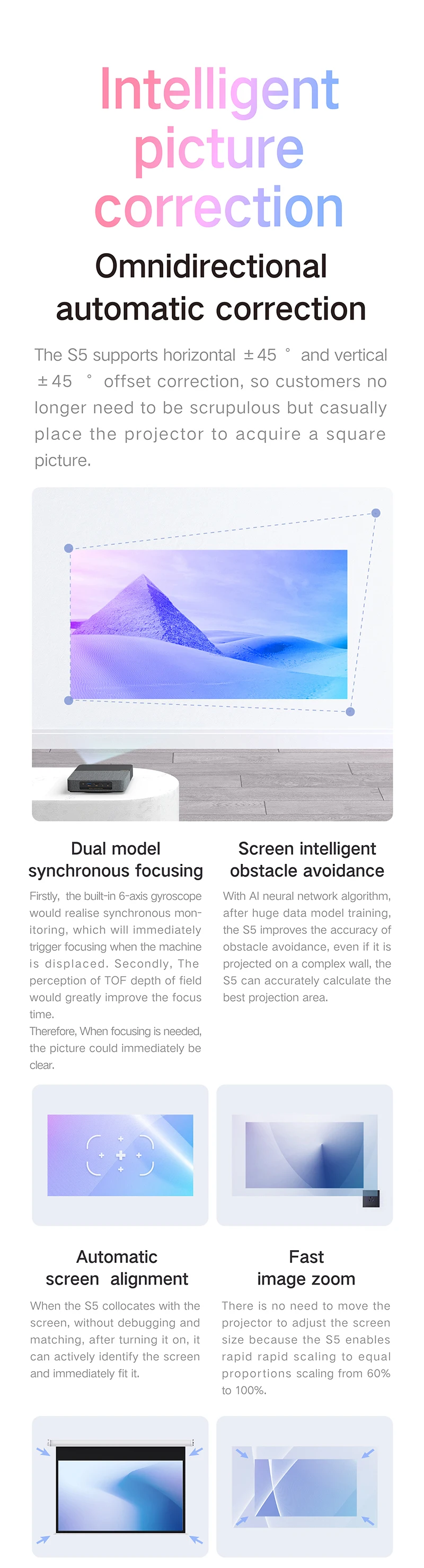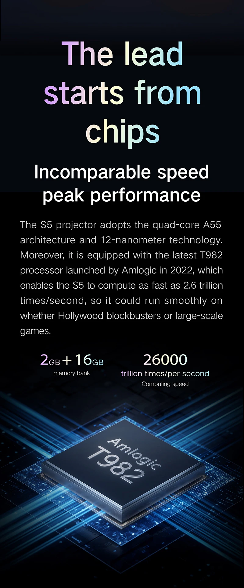 Experimente visuais nítidos com a resolução óptica de 1920x1080dpi do Formovie S5, perfeita para entusiastas de cinema doéstico.