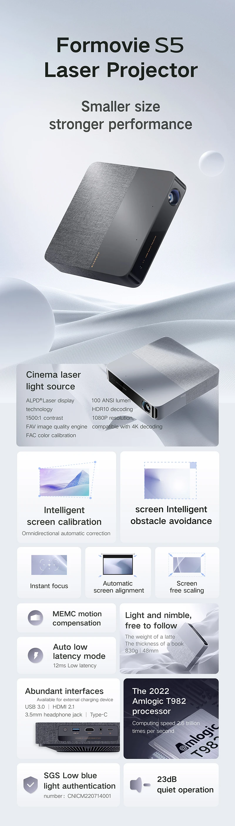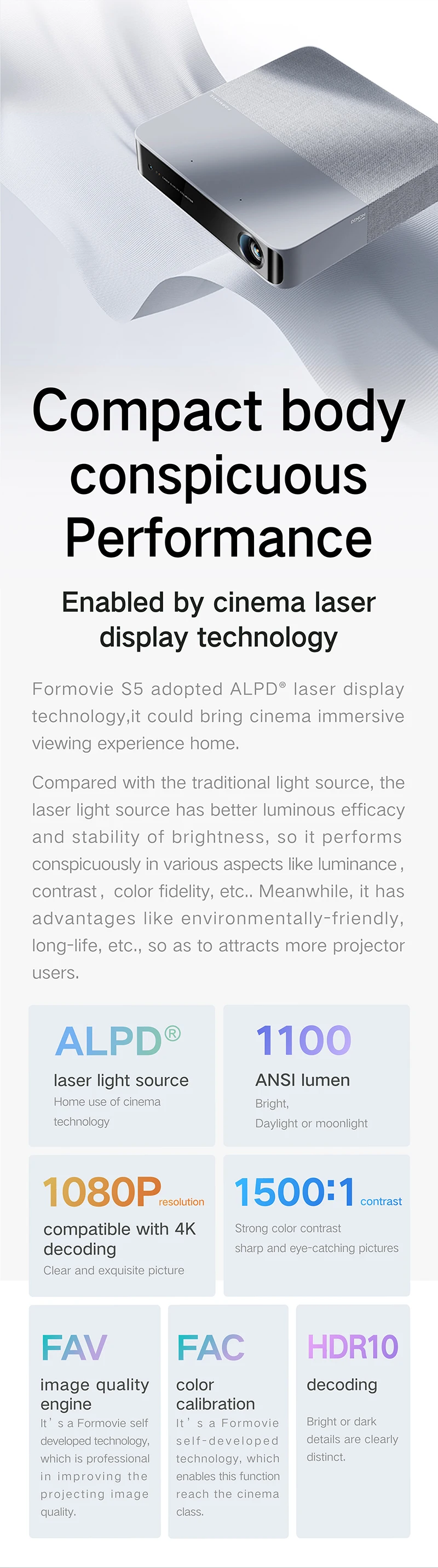 - > Formovie S5 Projetor Laser FHD 1080P 1100ANSI Lumens Beamer Portátil Mini Para Home Smart Theater ALPD Bluetooth Cinema ao ar livre