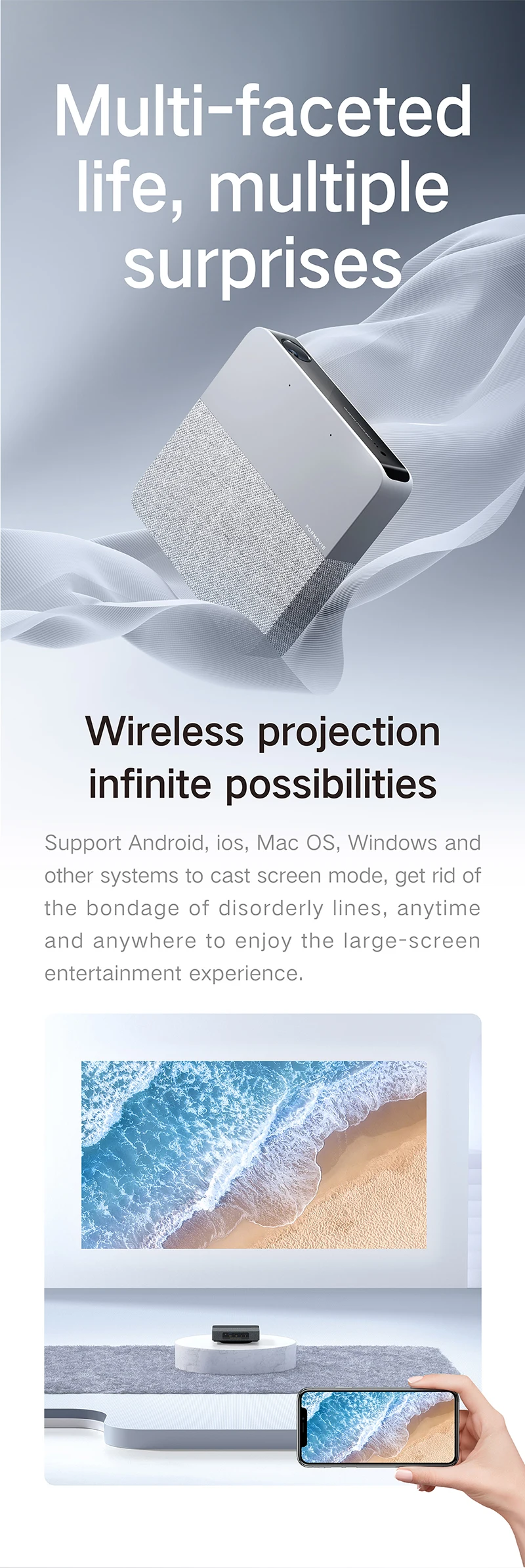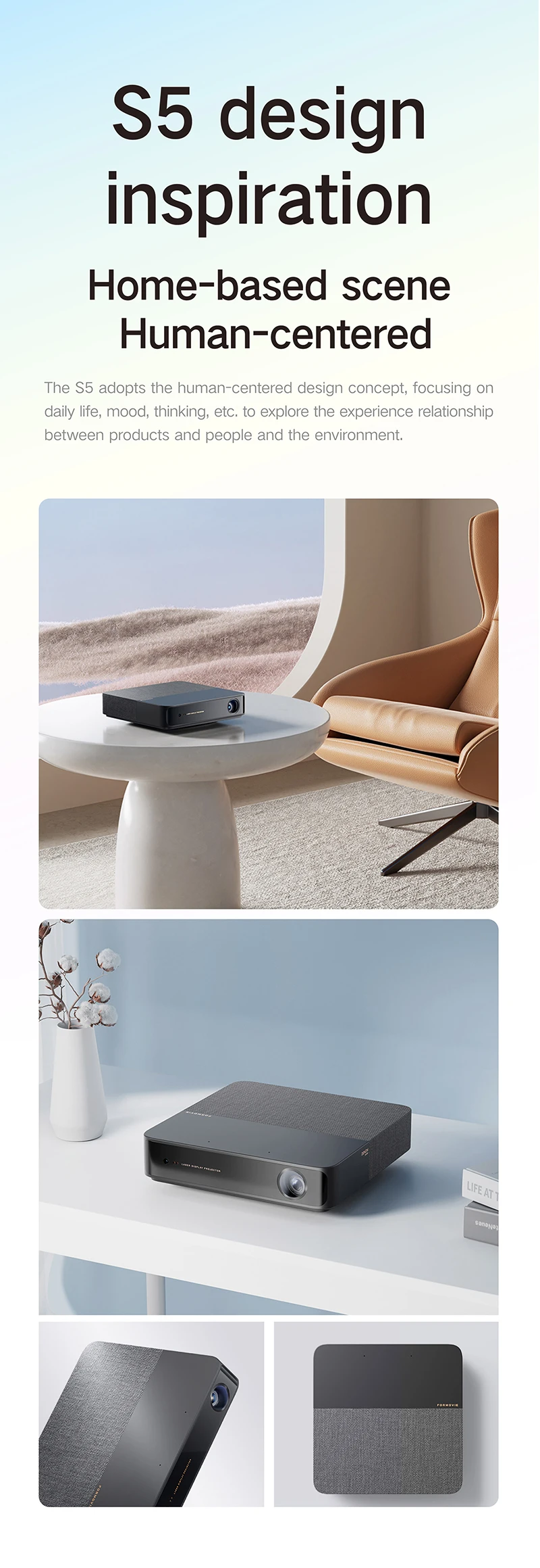 O Formovie S5 compacto e leve foi projetado para fácil portabilidade, tornando-o ideal para noites de cinema ao ar livre.