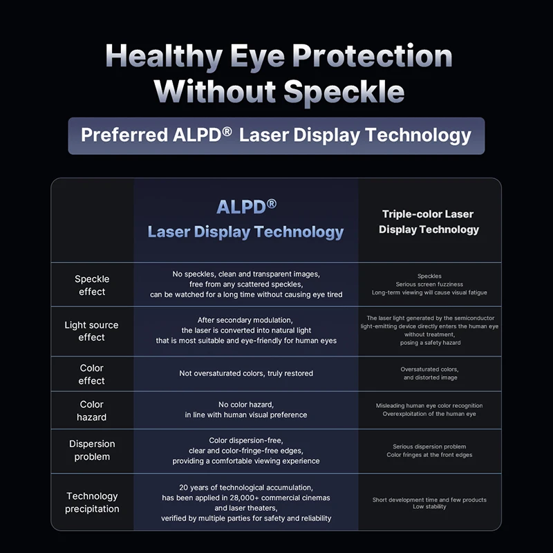 A combinação de fontes de luz laser e LED proporciona uma projeção duradoura e com baixo consumo de energia, garantindo desempenho consistente.