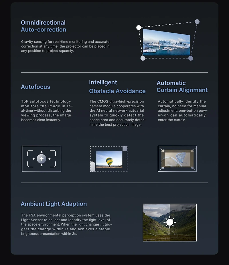 Nunca se preocupe com ajustes de ângulo com o recurso de correção trapezoidal automática, garantindo que suas projeções estejam sempre perfeitamente alinhadas.