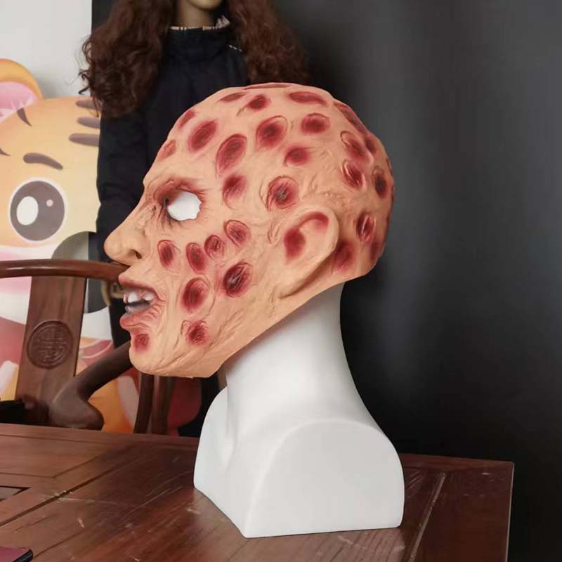 Aparência realista: A máscara tem uma aparência realista que faz com que pareça um verdadeiro zumbi ganhou vida.As características detalhadas e as cores realistas aumentam o fator de terror, tornando-o uma ótima opção para casas mal-assombradas e cosplay.