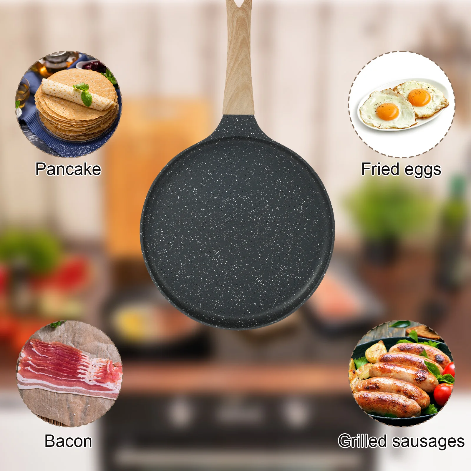 [Aplicações amplas] Esta panela é adequada para panquecas, crepes, panquecas francesas, também adequada para fritar ovos, bacon, salsicha, etc.