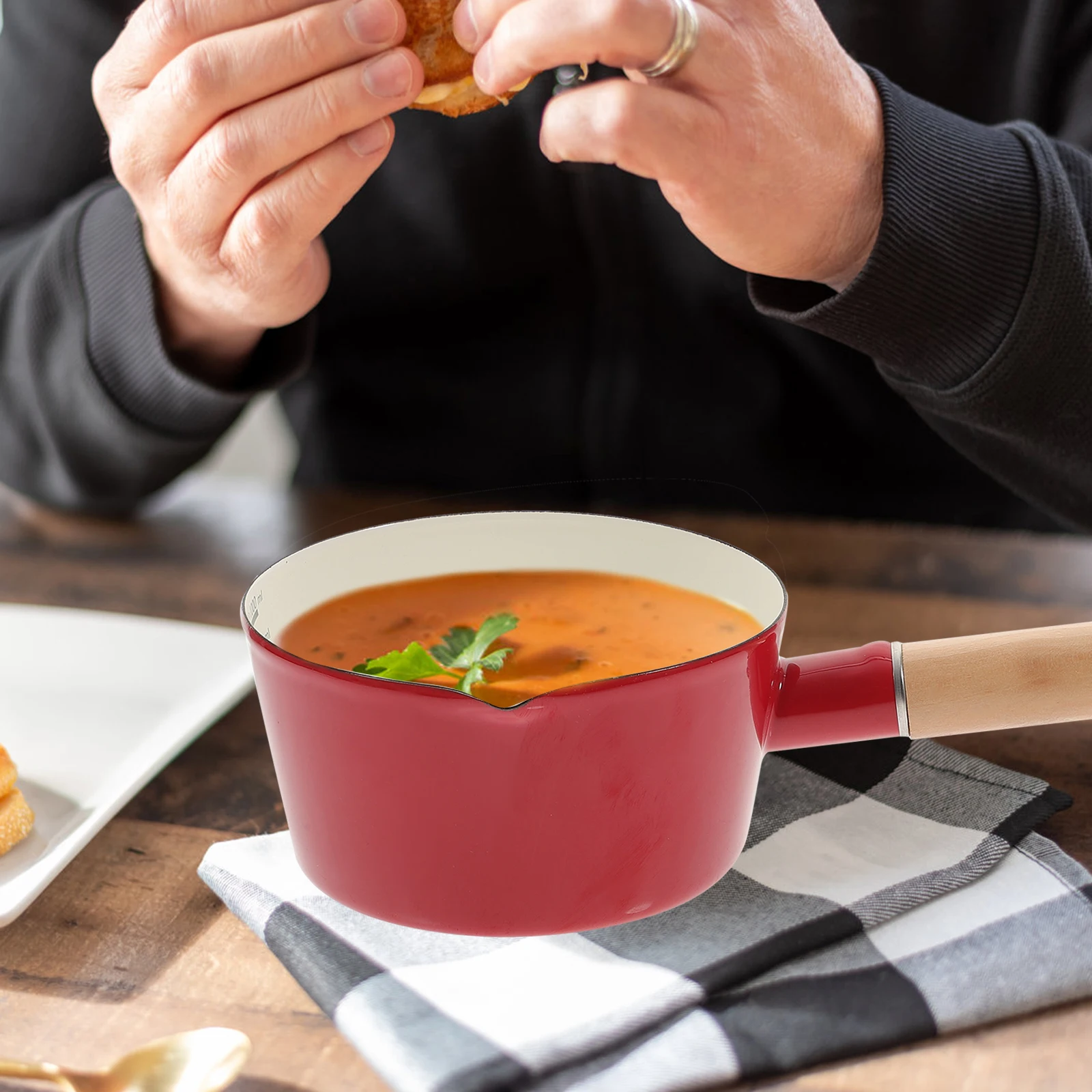 Panela de cozinha esmalte antiaderente molho de frigideira de neve com bico alça de madeira leite mini