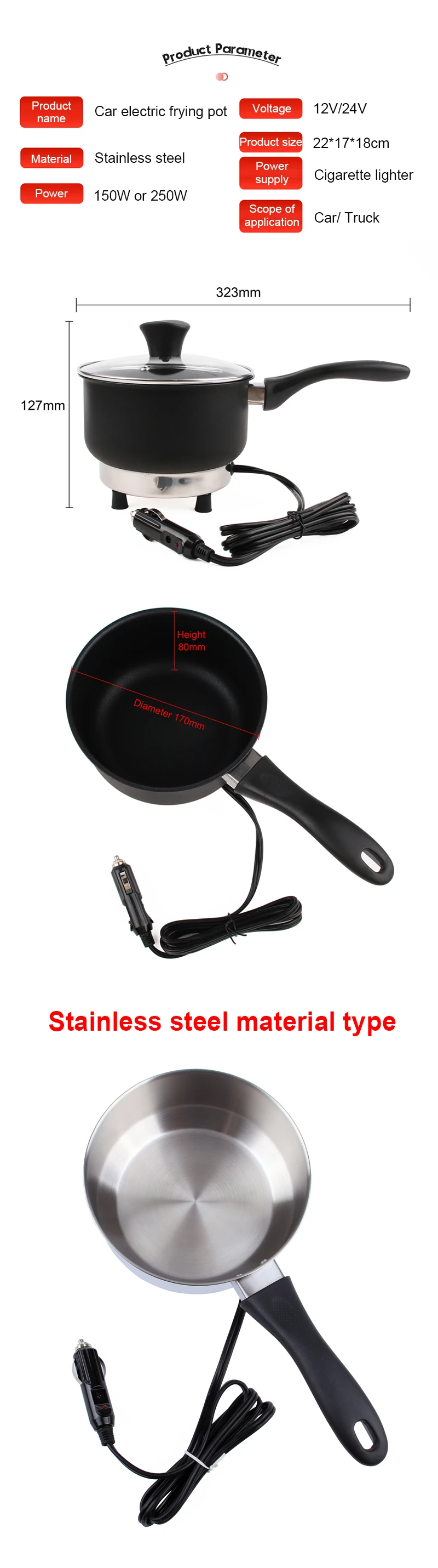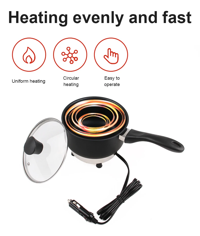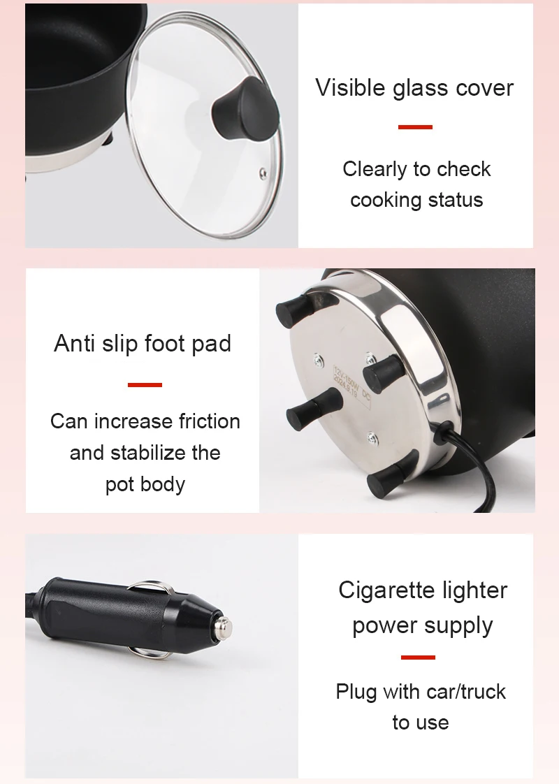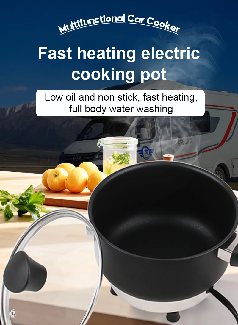 Frigideira elétrica multicooker 12v/24v, panela de arroz, sopa, guisado, aquecedor, caldeira, viagem, carro/caminhão, frigideira, lancheira