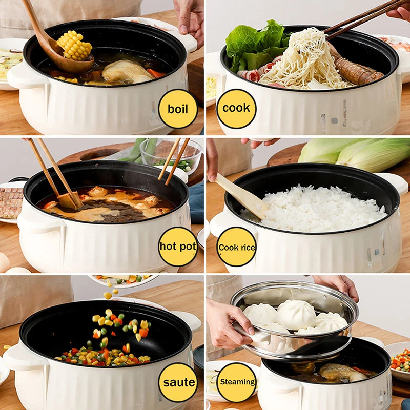 Frigideira elétrica multifuncional, 1.7/3.2/3.7l, antiaderente, fogão lento, grande capacidade, panela quente elétrica, suprimentos de cozinha