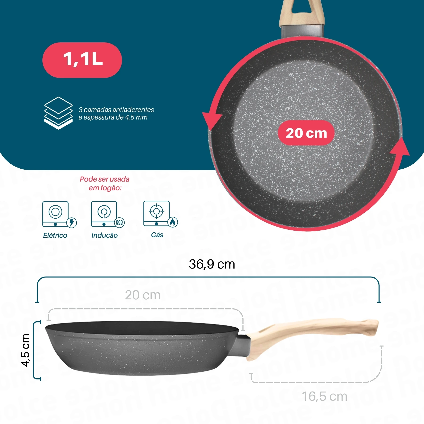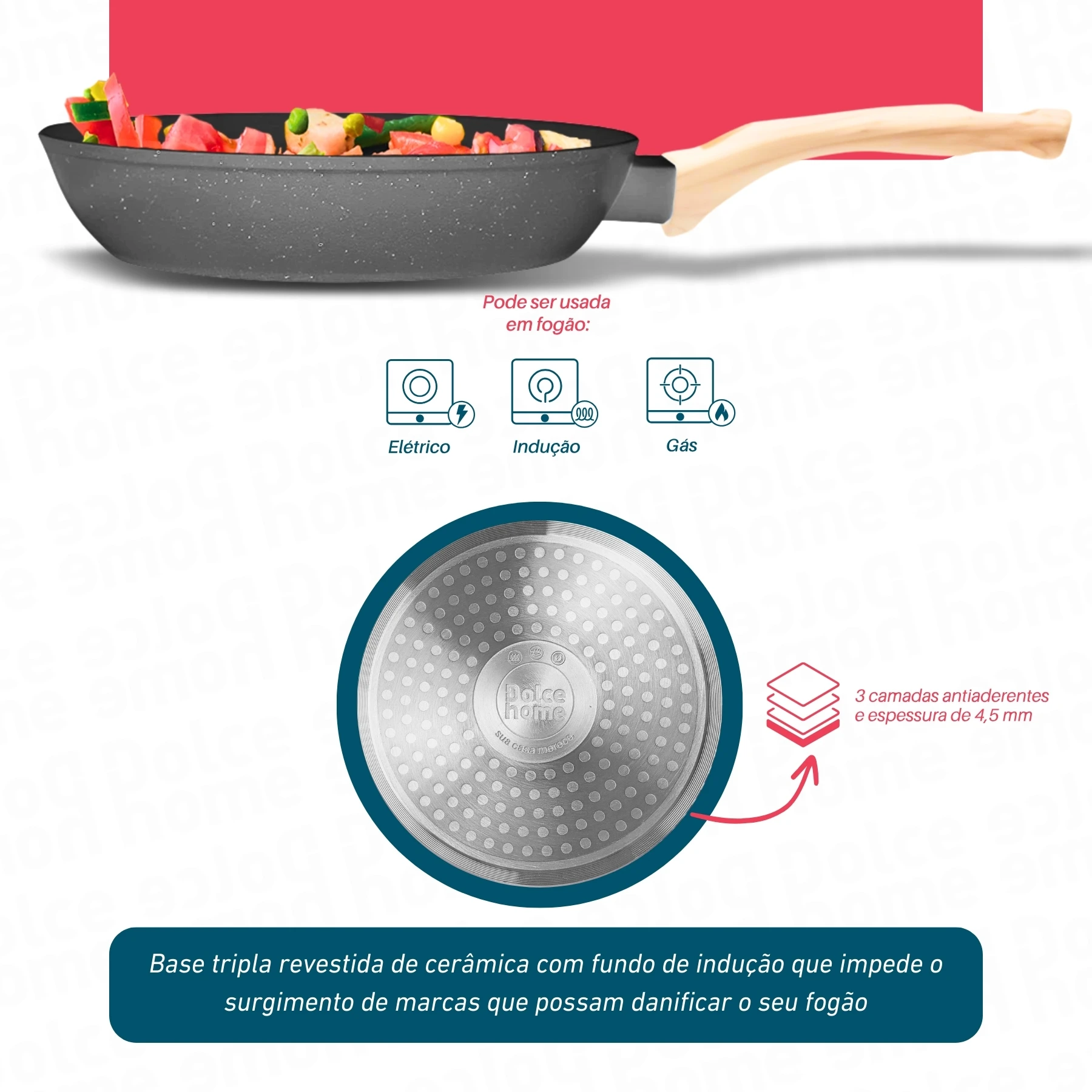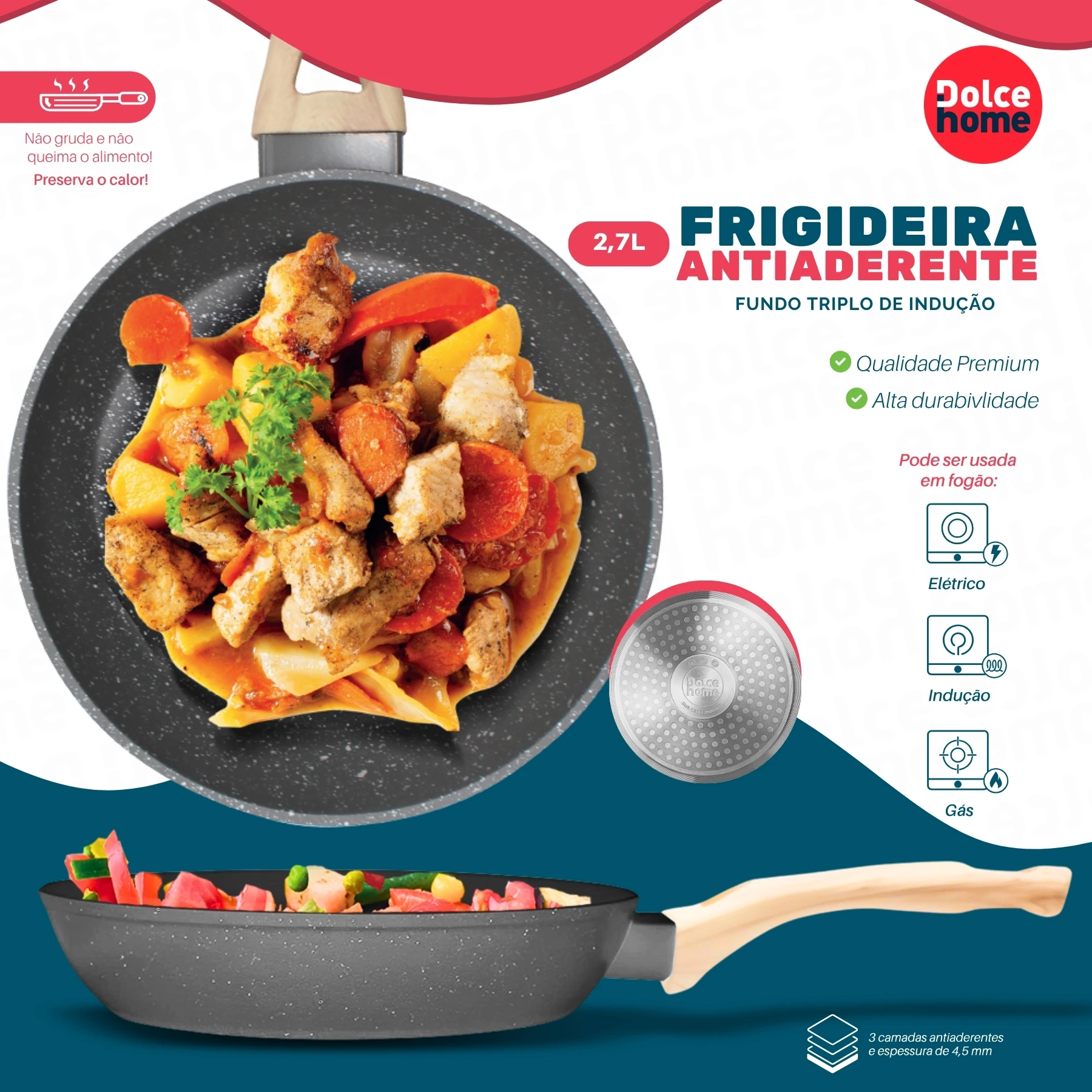 Frigideira Indução 3 Tamanhos Fundo-triplo Revestimento Antiaderente - Dolce Home