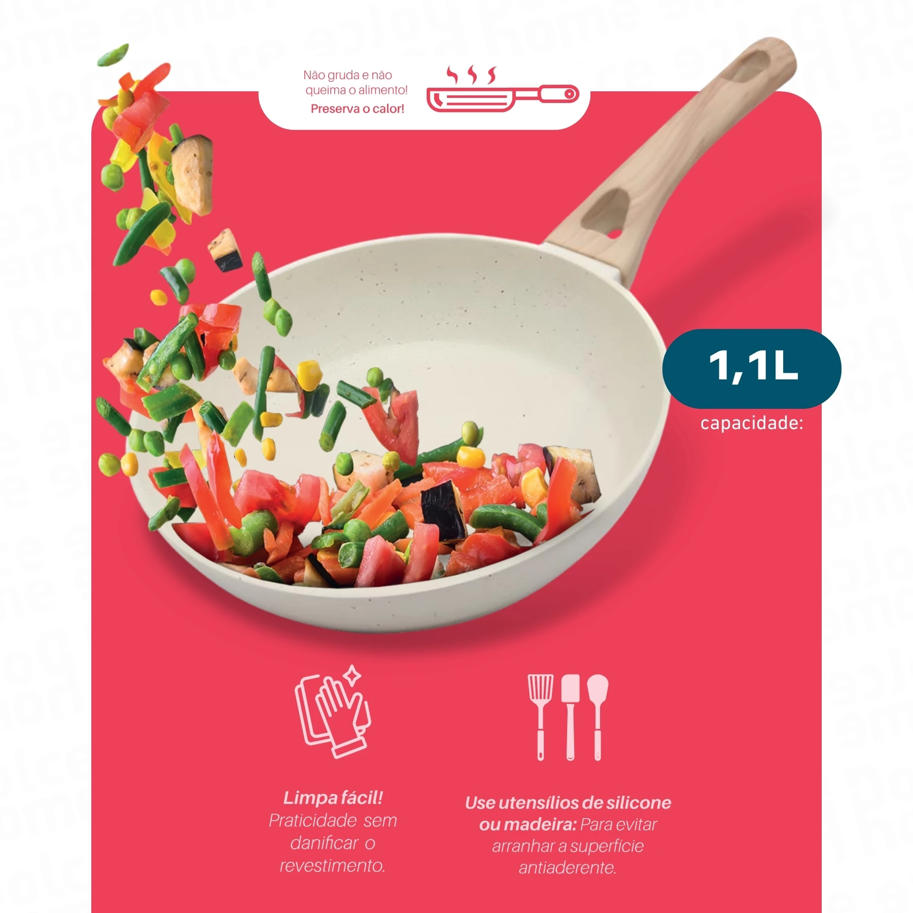 - O revestimento cerâmico não gruda nos alimentos, permitindo que você use menos óleo