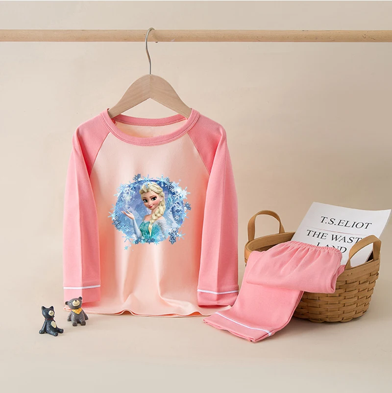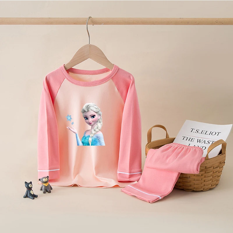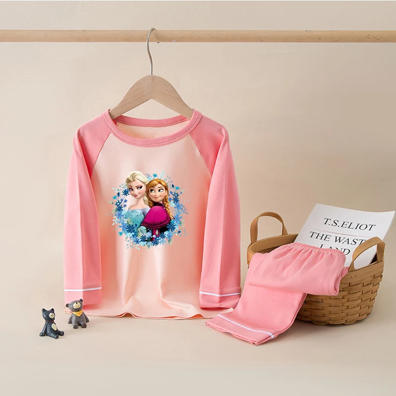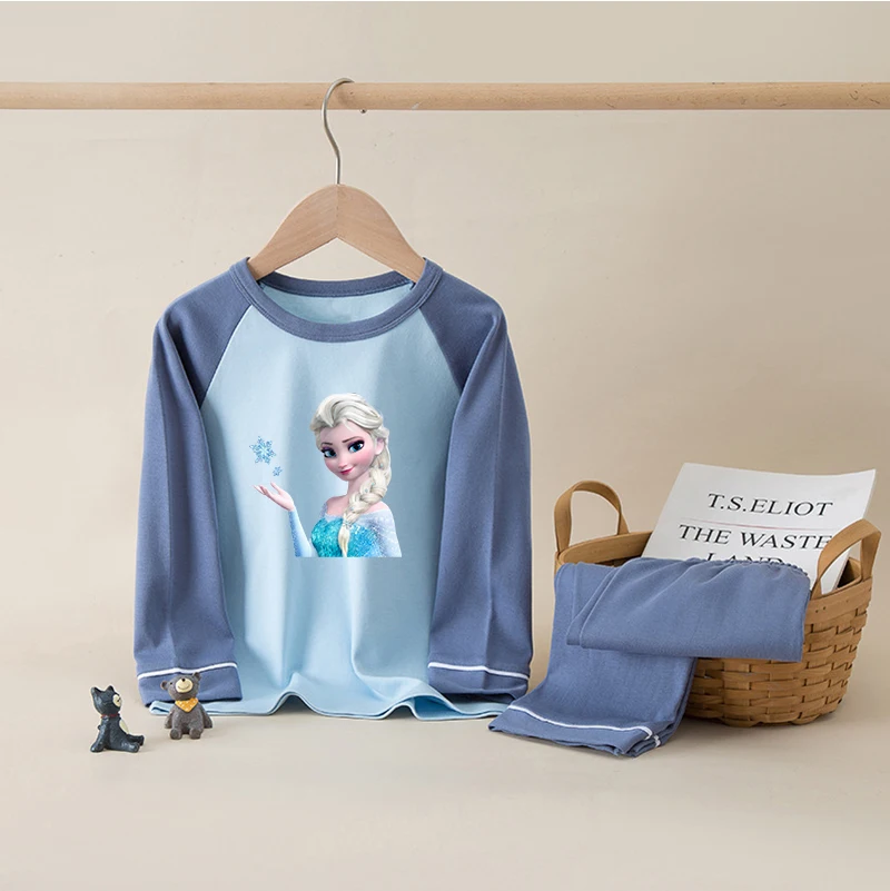 Frozen anna elsa outono conjuntos de roupas infantis meninos dos desenhos animados pijamas crianças conjunto bebê meninas 100% algodão pijama