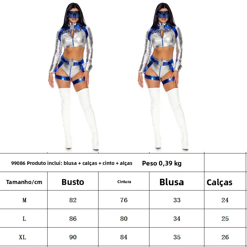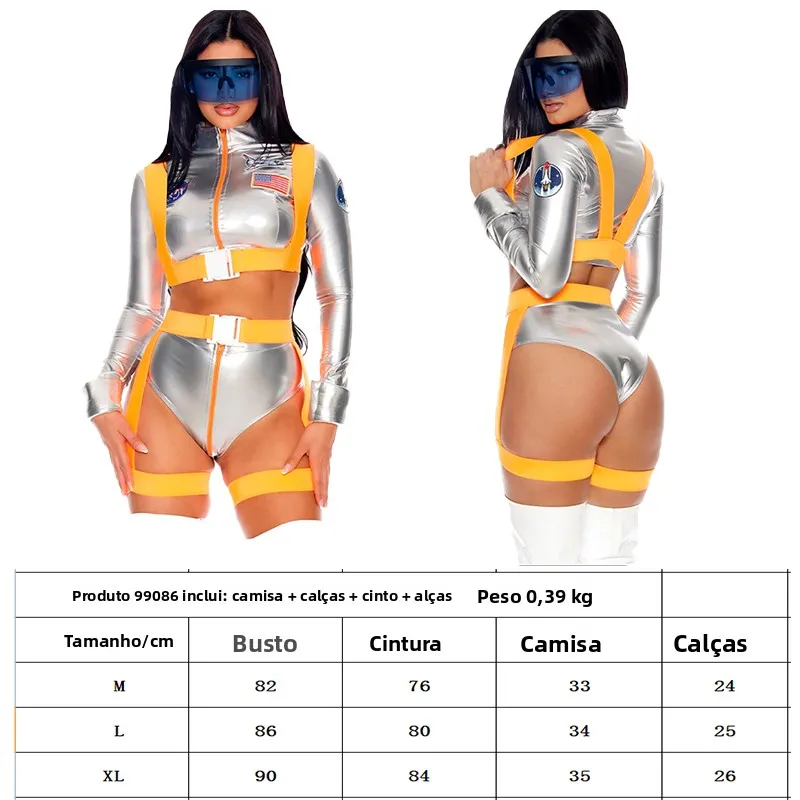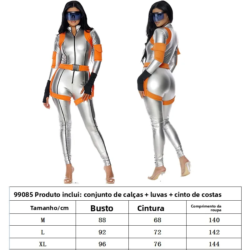 Este traje de astronauta é perfeito para homens e mulheres, tornando-o uma opção versátil para qualquer evento.