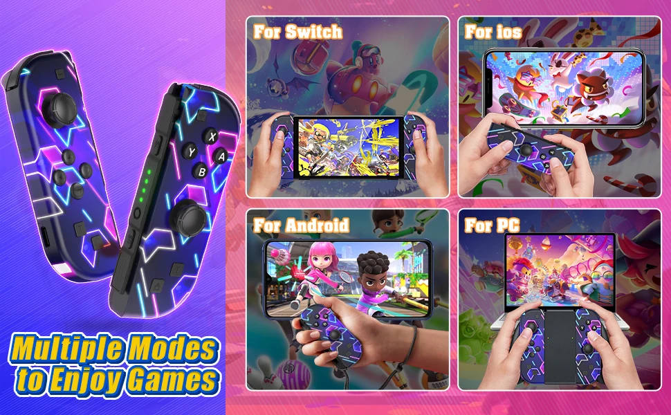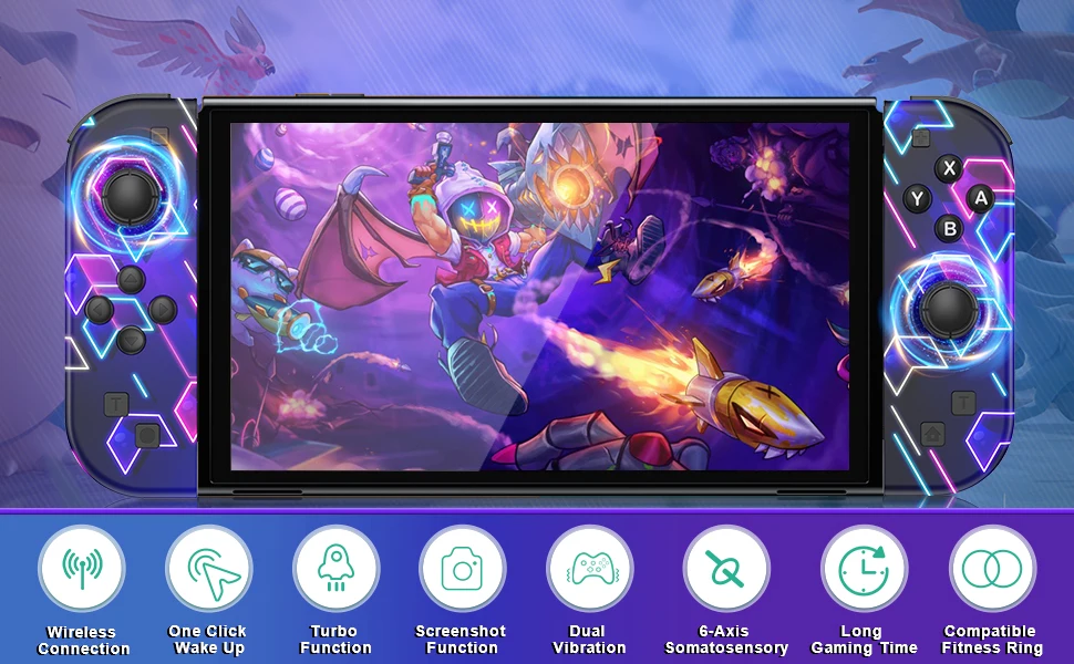 Funciona perfeito para Nintendo Switch/Oled/Lite para controlador Joycons BT com acessórios para jogos de vibração turbo, sem alça