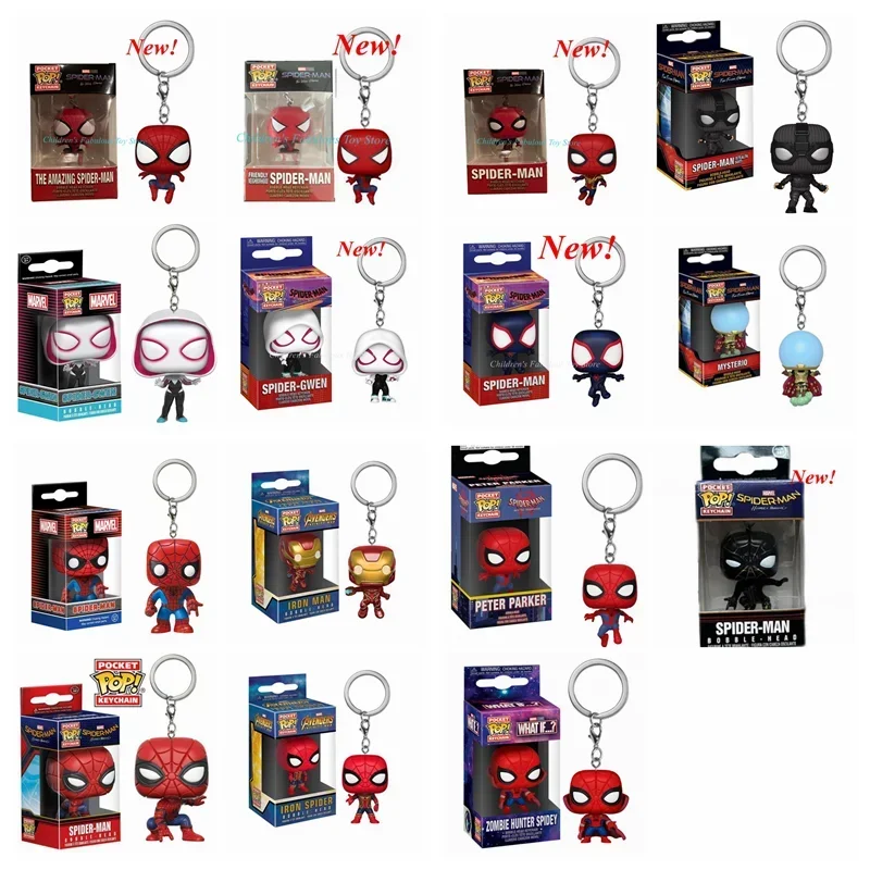 - > Funko bolso pop chaveiro super heróis spiderman milhas morales chaveiros brinquedo bobble cabeça chaveiro figuras de ação vinil brinquedos