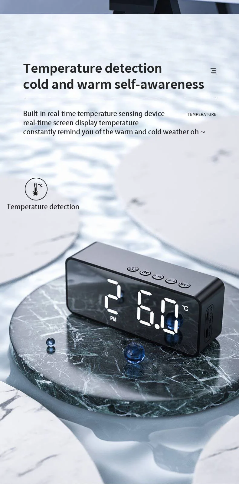- > G50 alto-falante sem fio bluetooth com mini cartão fm espelho despertador tenda de áudio recebendo invite de voz k
