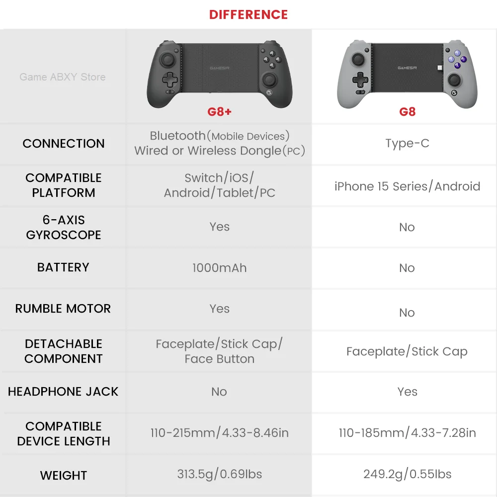 The GameSir G8+ is purposefully designed for universal compatibility, featuring an extendable bridge and sufficient rear space to be compatible with a wide range of phone models with length within 120-215mm / 4.72-8.46in. What make this controller stands out is that it is ultimately compatible with Switch and tablets, gaming on every devices you desired.