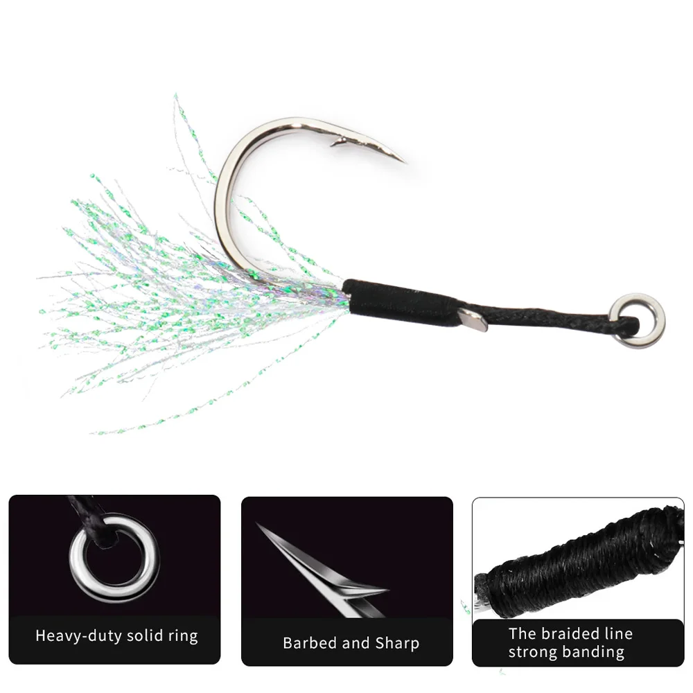 Gancho de assistência afiado, ângulo de aço de alto carbono, fio farpado, pena fundida, equipamento de pesca, anel, ferramenta de jigging, isca de pesca, anzol