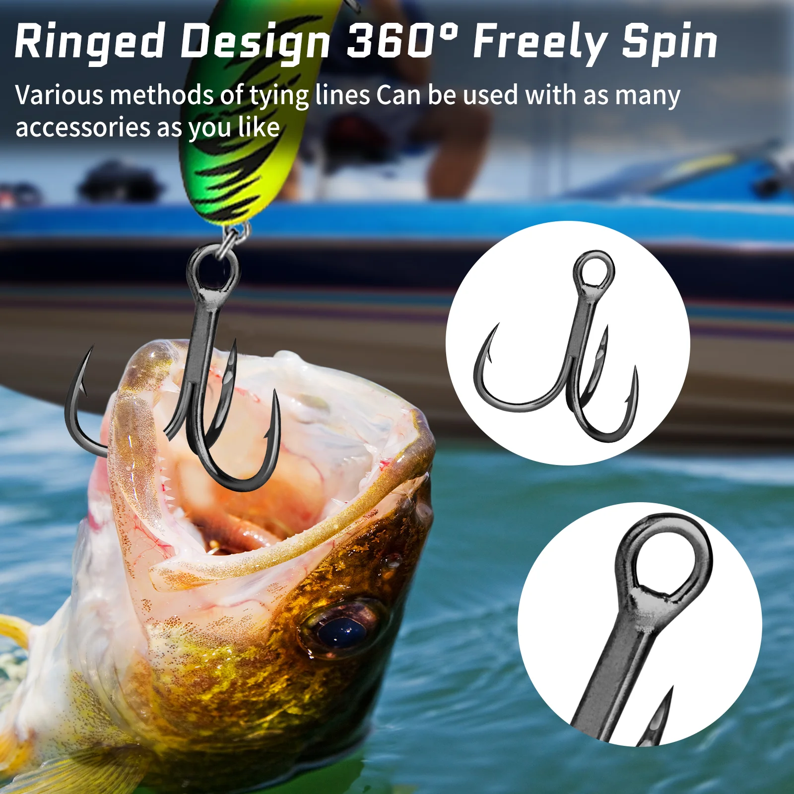 Ganchos agudos de pesca 9km, preto, 25 ~ 100 peças, água salgada, forte, ganchos triplos de pesca, gancho de substituição