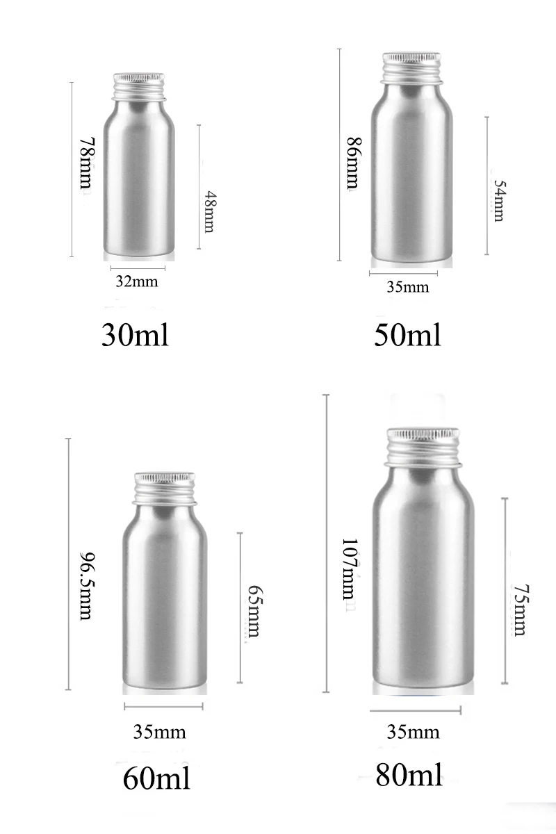 20pcs Garrafa De Alumínio Com Tampa 30ML-500ML Garrafa De Alumínio Garrafas Recarregáveis Travel Bottle Cosmetic Container Portátil Jx156-20