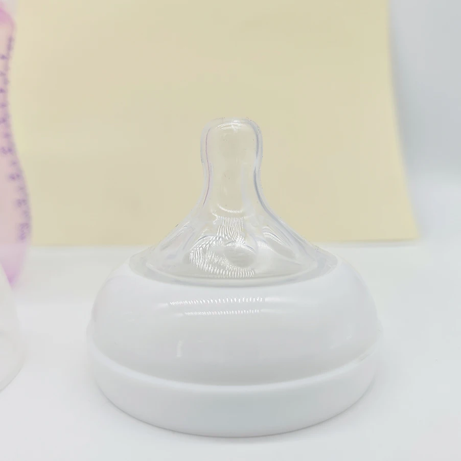 Nosso novo frasco tem um material de mamilo macio para a pele que está mais próximo do peito. As pétalas confortáveis e a forma natural permitem uma trava natural e facilitam a combinação com a amamentação e a mamadeira.