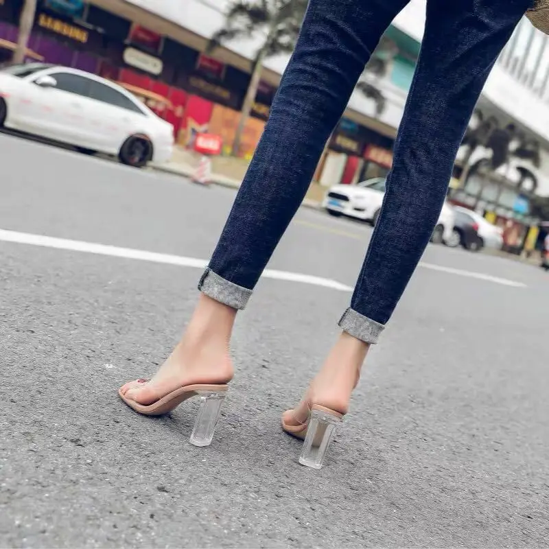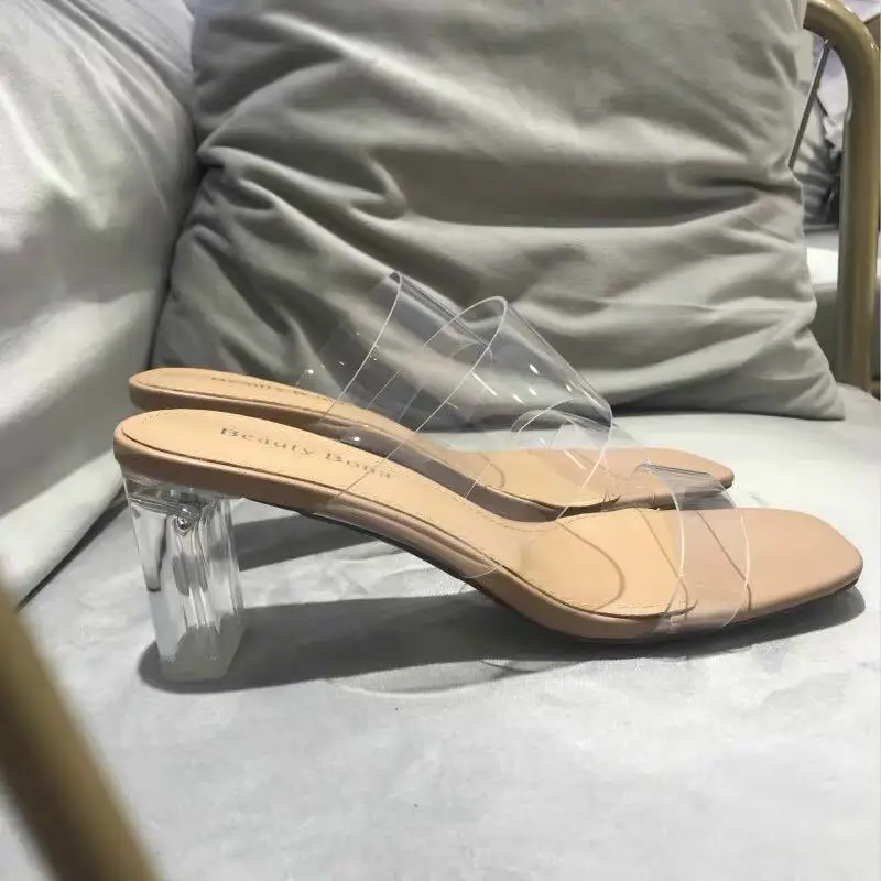 - > Geléia de PVC Bombas Sandálias para Mulheres, Toe Aberto, Salto Alto, Transparente, Chinelos Perspex, Sapatos Claros, Verão