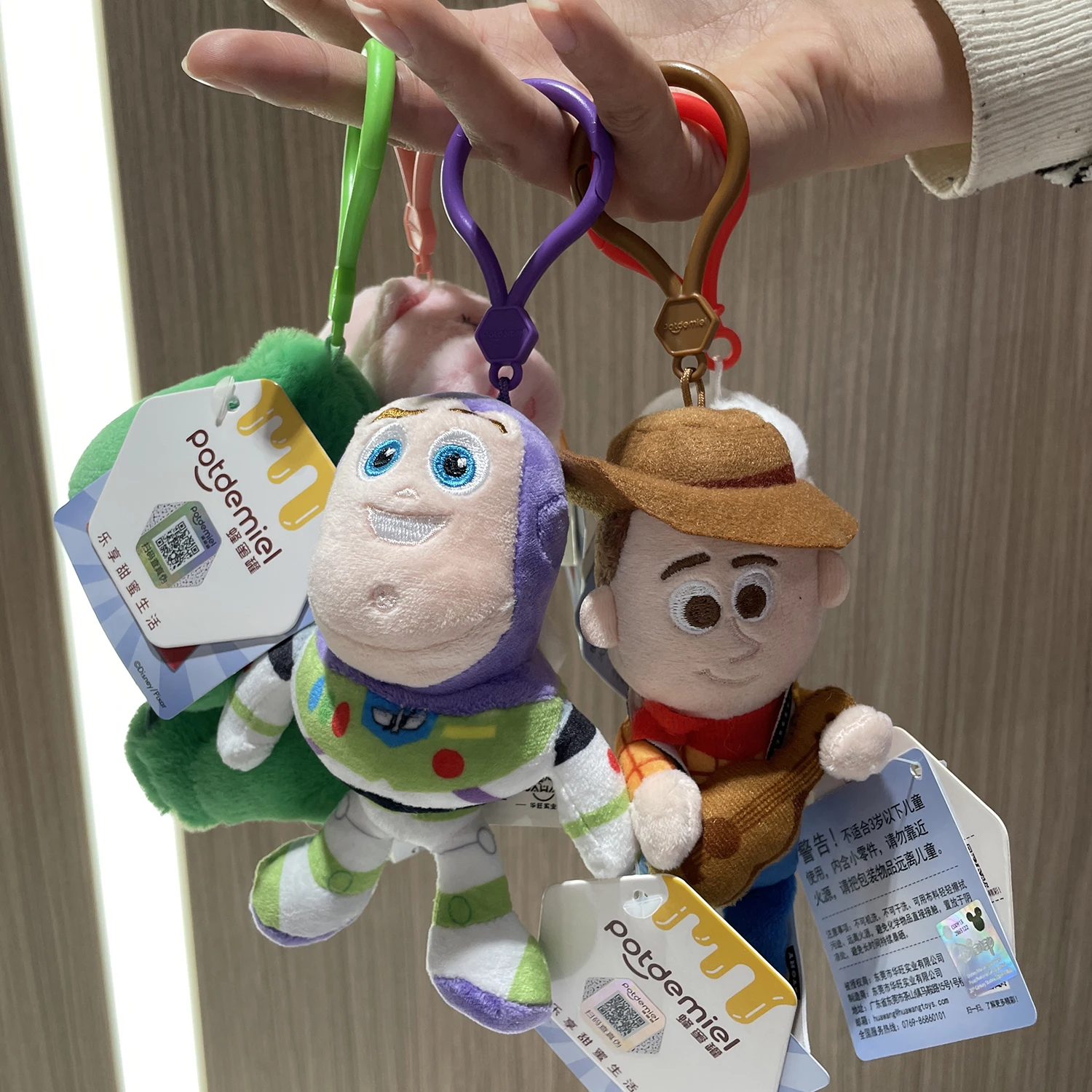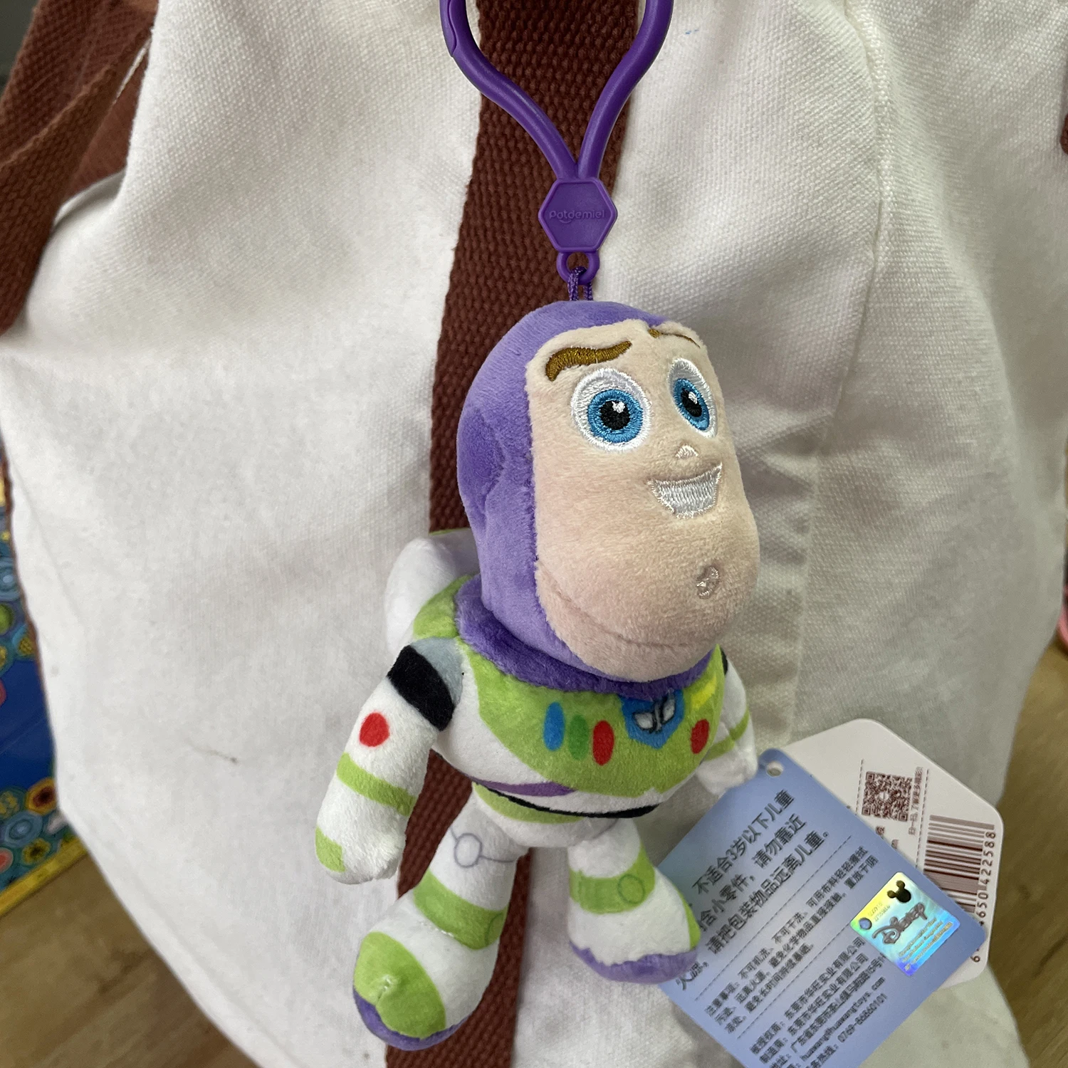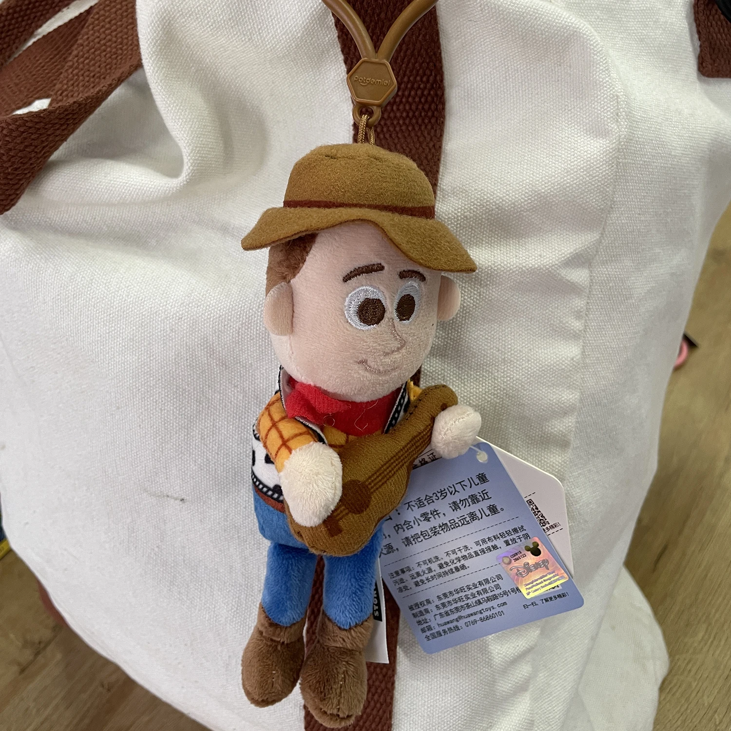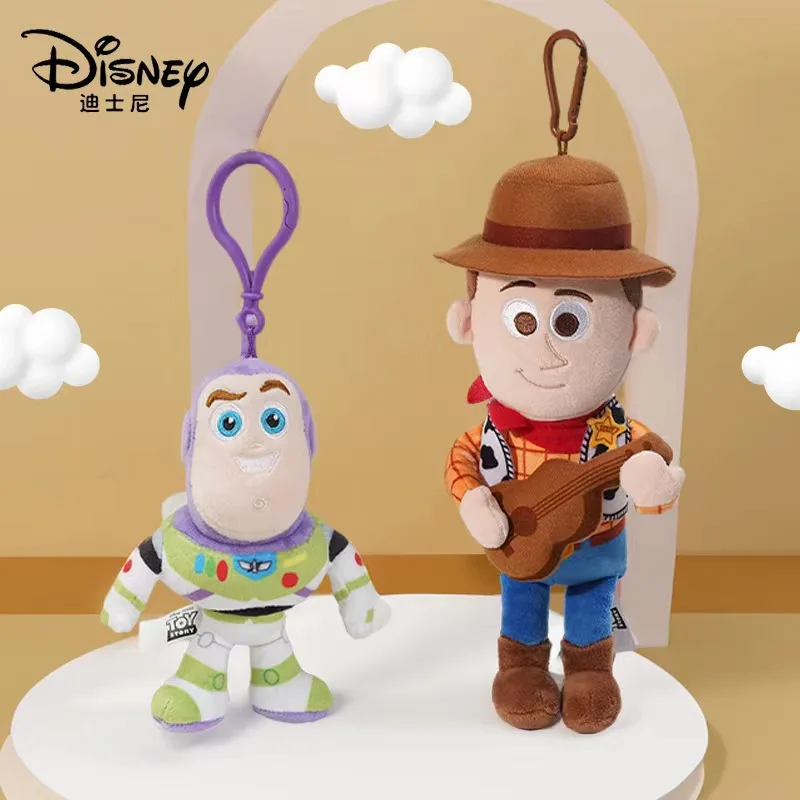- > Genuíno disney buzz lightyear woody brinquedos de pelúcia toy story pingente saco acessórios chaveiro carro pingente presente do dia dos namorados