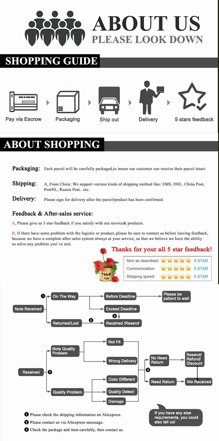 1.Devido aos diferentes monitores e efeitos de luz, a cor real do item pode ser ligeiramente diferente da cor mostrada nas fotos.Obrigado!