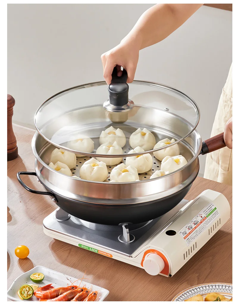 GIANXI-Panelas Domésticas, Frite, Cabo de madeira, Panela, Frigideira e Ok, Panelas antiaderentes para cozinha, 30cm