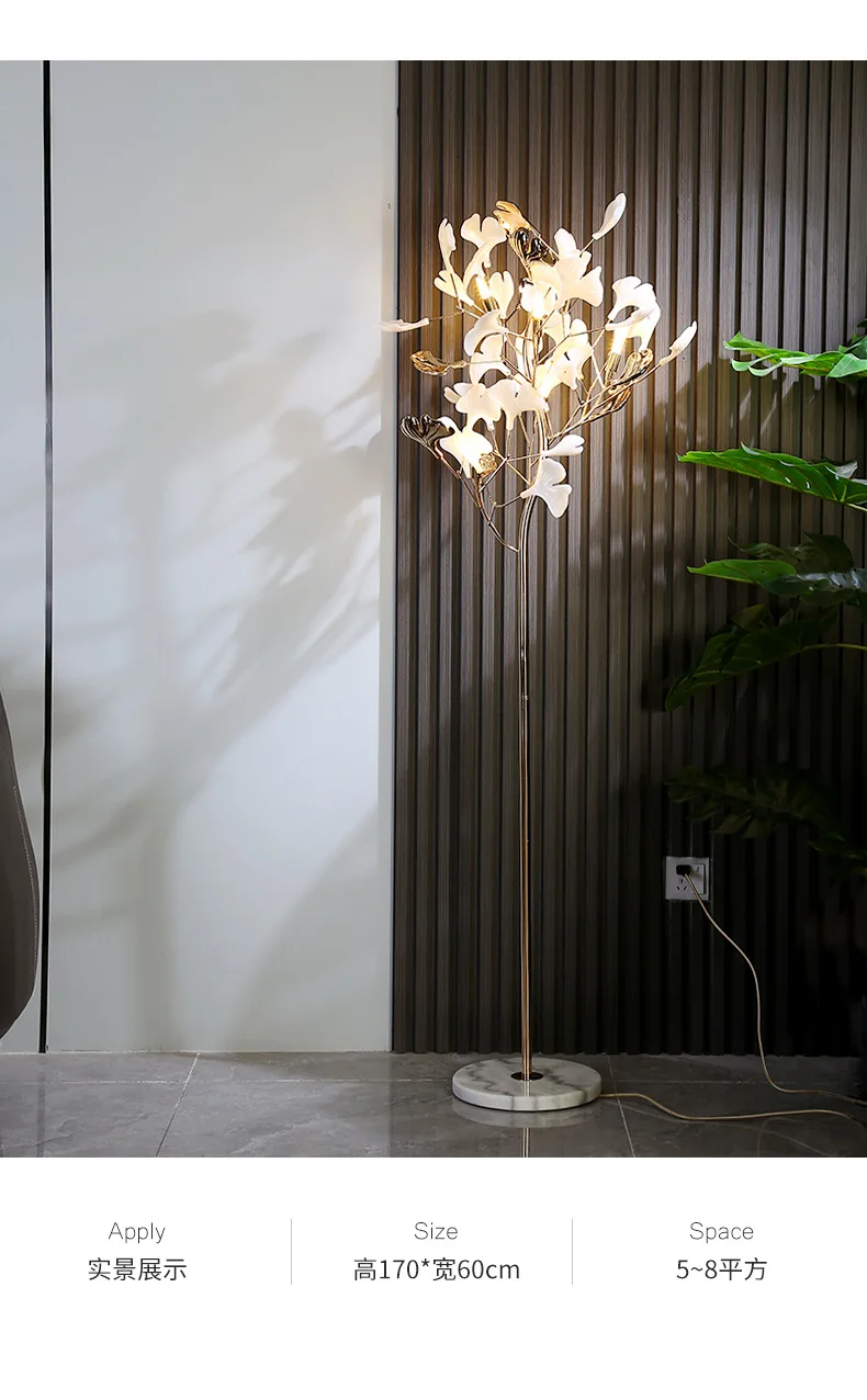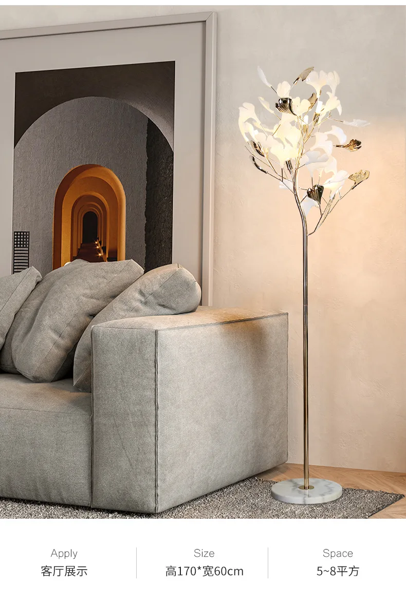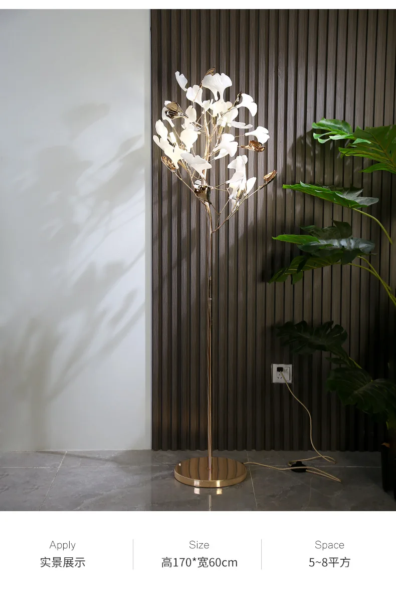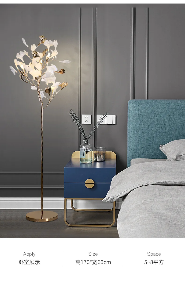 Ginkgo Leaf Lâmpada de assoalho decorativa para sala de estar, lâmpada vertical nórdica, lâmpada de cabeceira simples, personalidade criativa, moderna