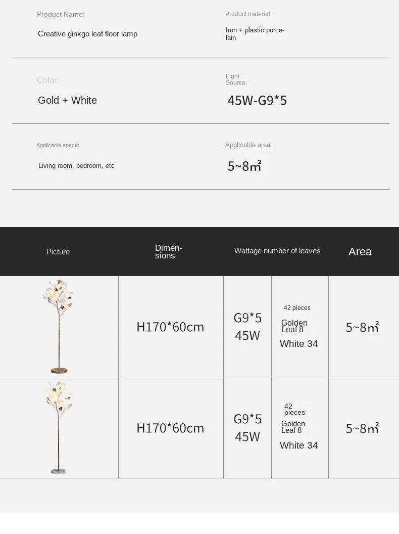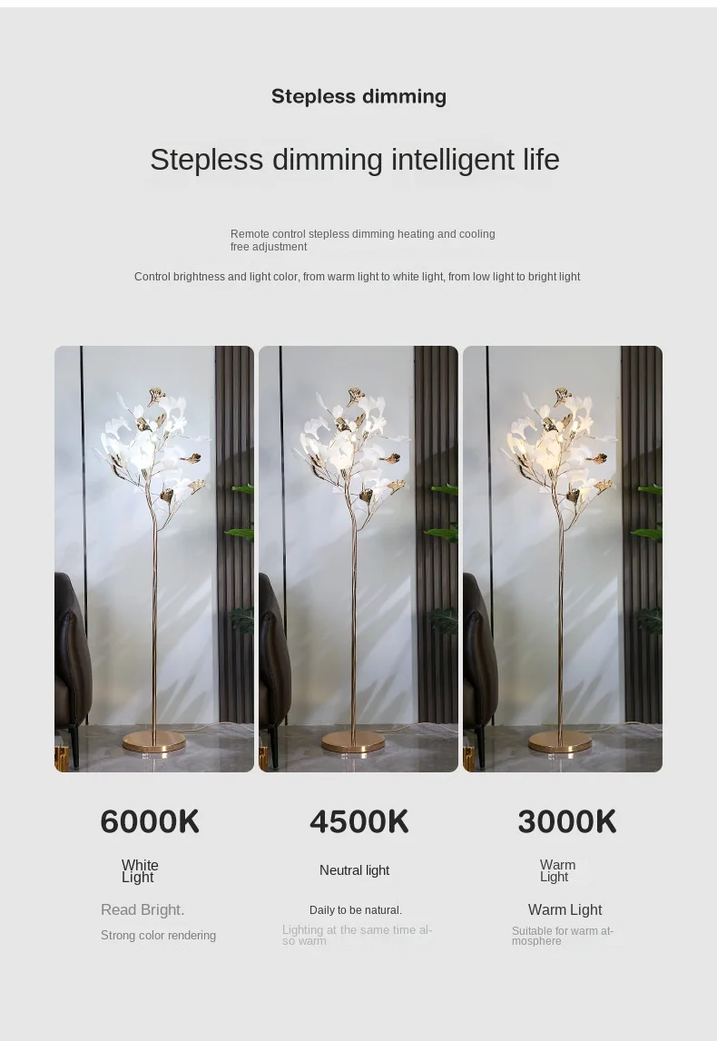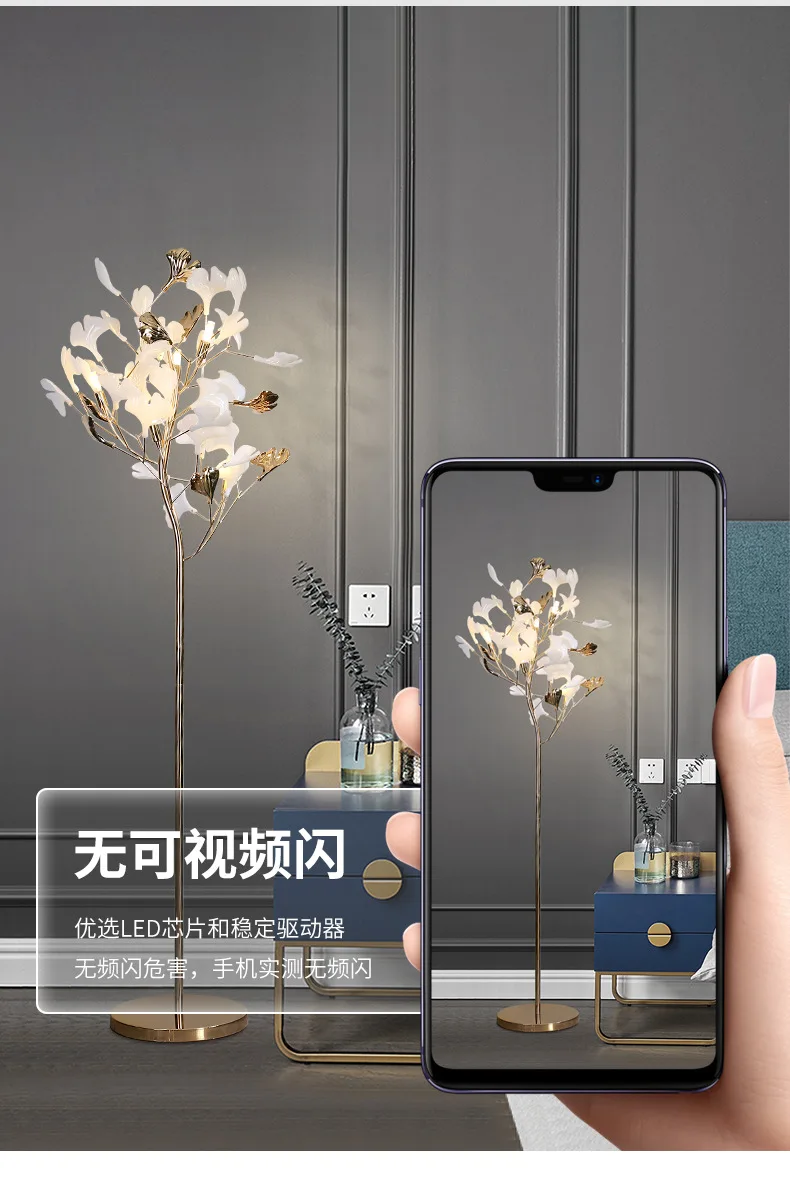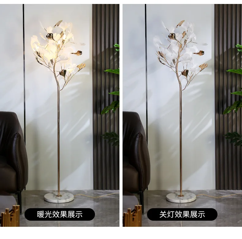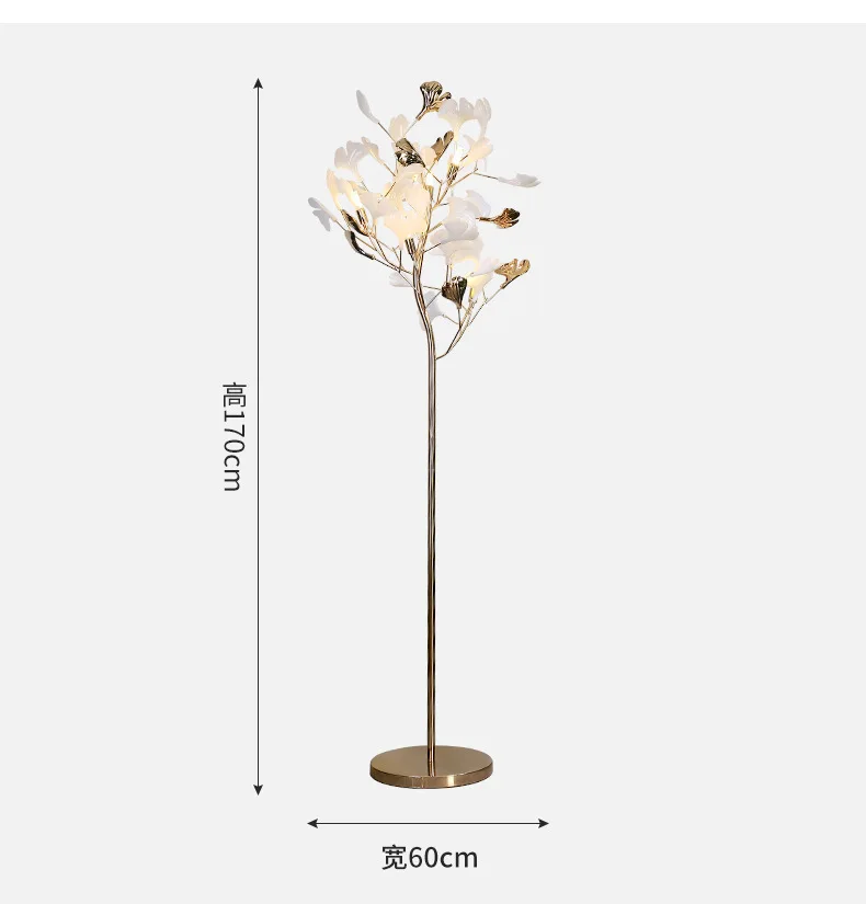 Ginkgo Leaf Lâmpada de assoalho decorativa para sala de estar, lâmpada vertical nórdica, lâmpada de cabeceira simples, personalidade criativa, moderna